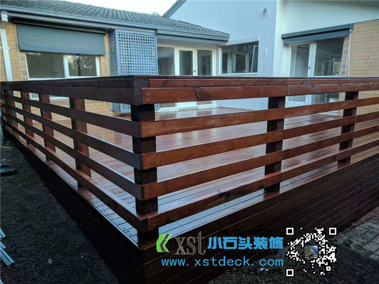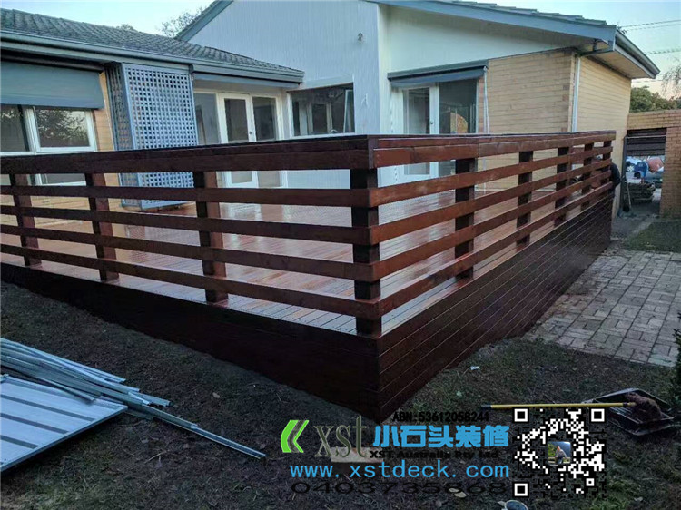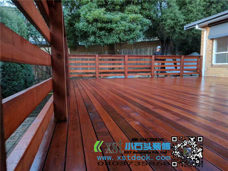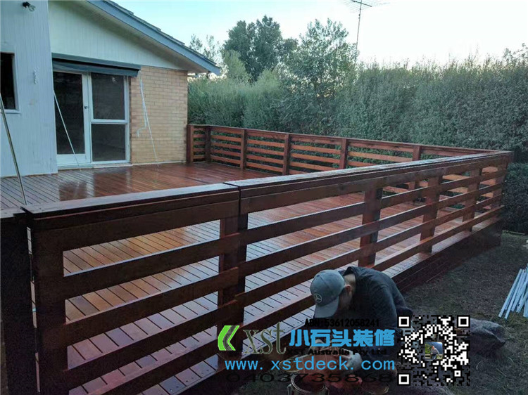Melbourne outdoor floor merbau decking 7.5*6.5 side 1 meters high decking board edge banding, horizontal hand guard fence, 140*19merbau panel cover edge