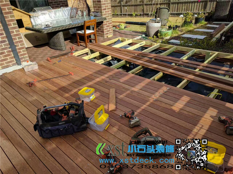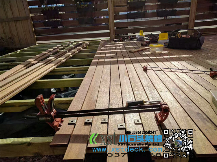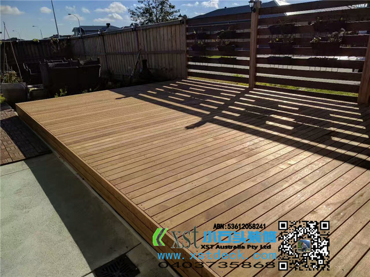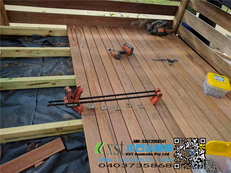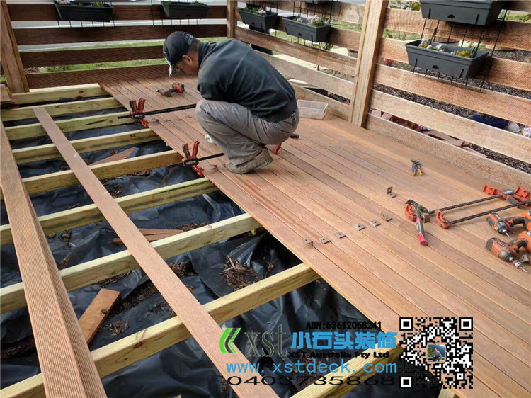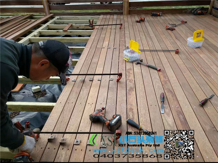 Melbourne outdoor floor merbau, decking, 90mmX19mm, each plate spacing, maintain 5mm or so, with stainless steel countersunk lock