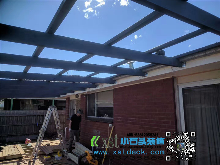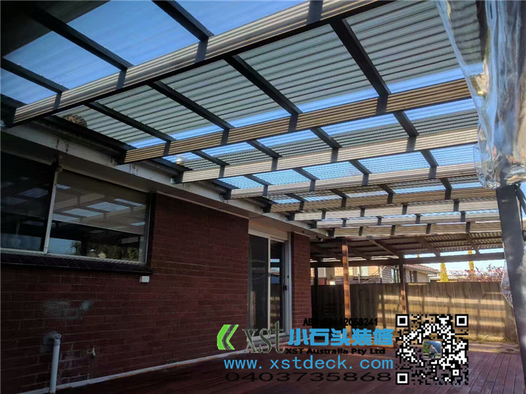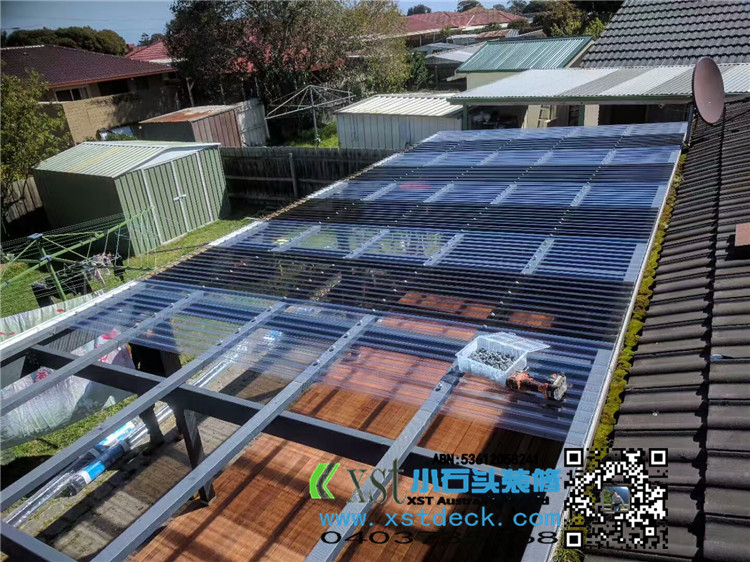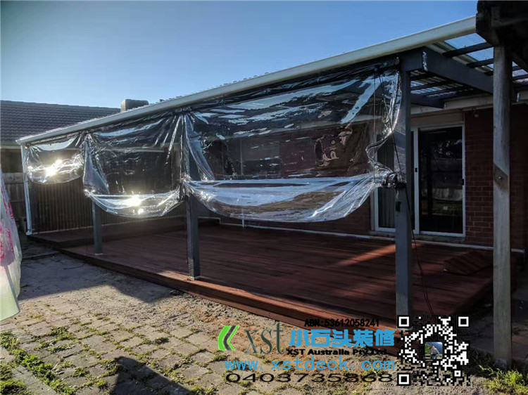 墨尔本 户外凉棚 雨棚 9.4MX4.2M 黑色和透明1+1顶棚青灰色油漆 3米长塑料帘
