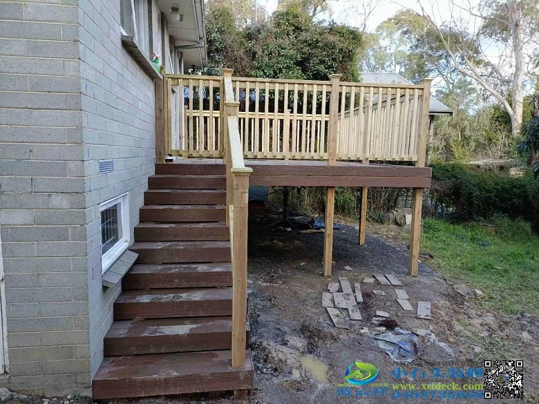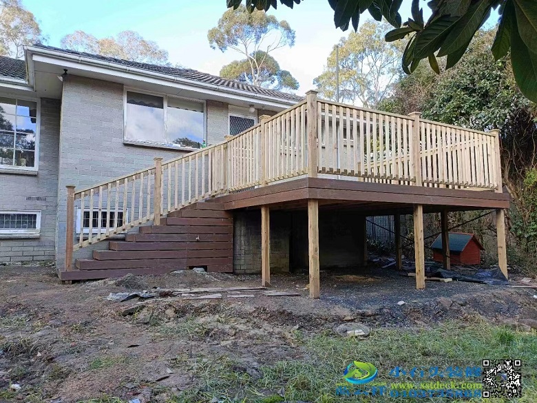 墨尔本带许可批文户外防腐木240X45高平台框架,10阶台阶,围栏一体小门,塑木140X22空心面板。