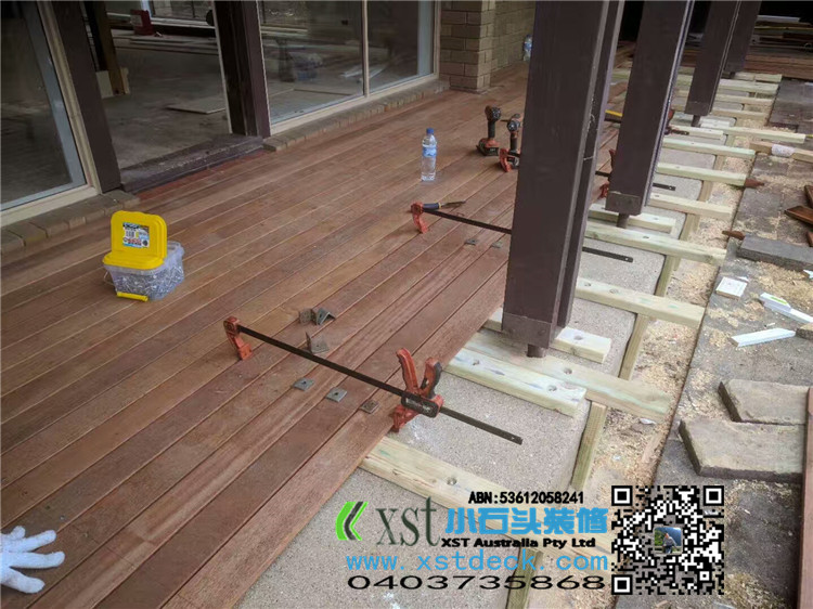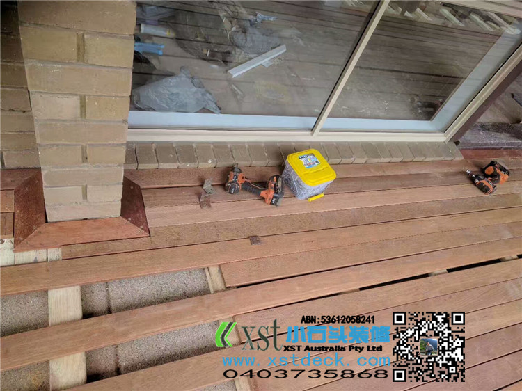墨尔本 户外地板 merbau decking 90X19 前门庭9.4MX2.1周边45度包边,考究做法。