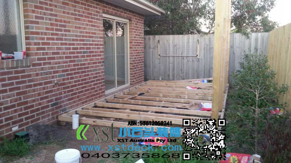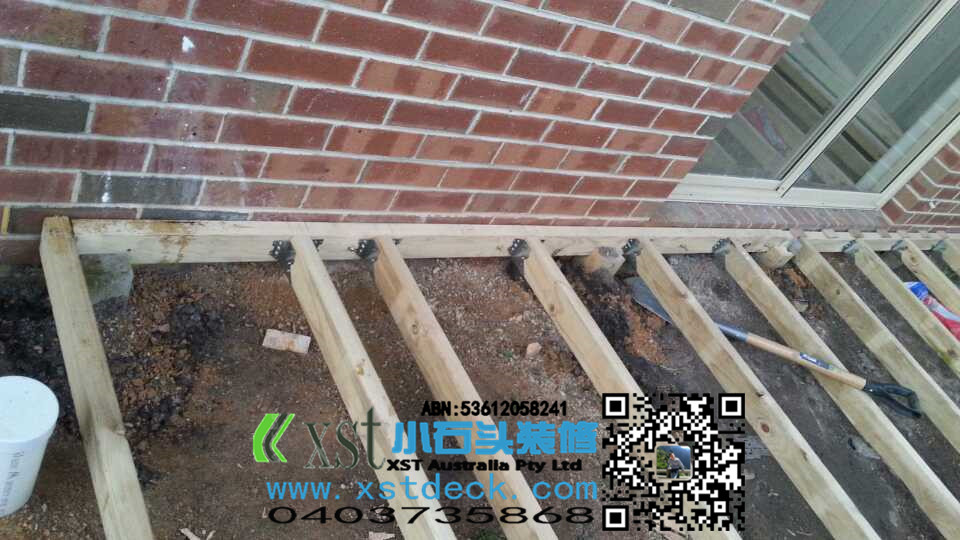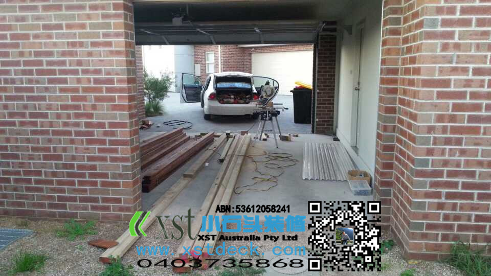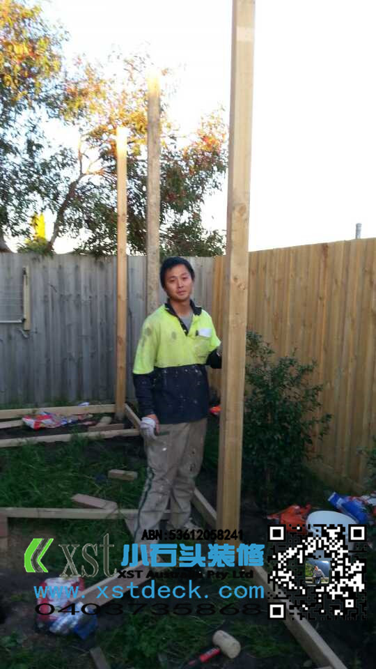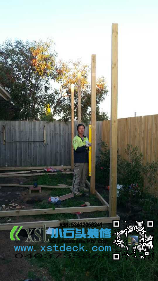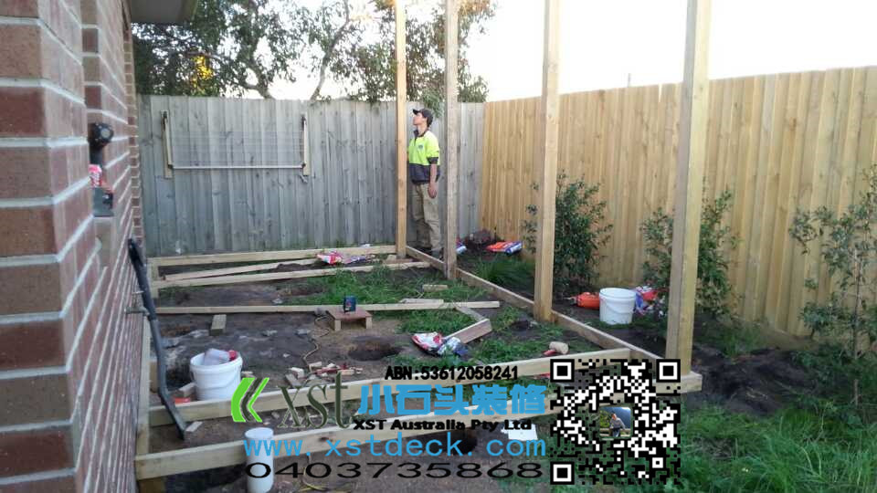 后院20平方decking加凉棚施工中