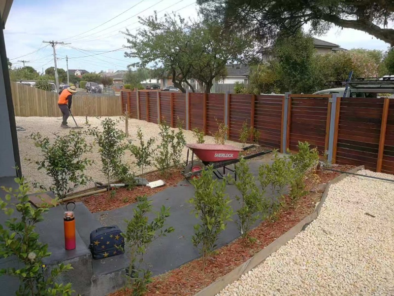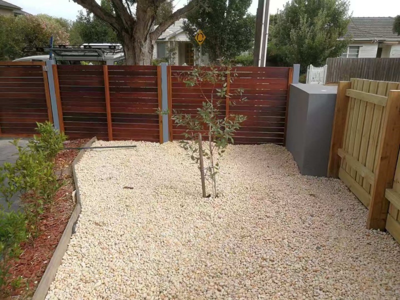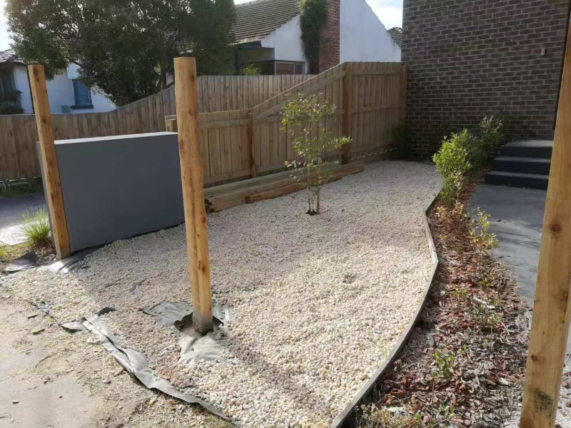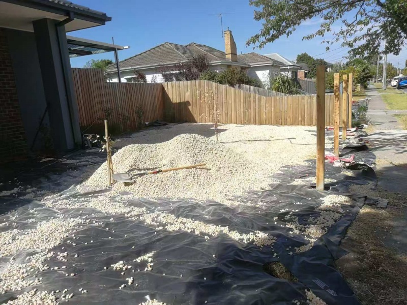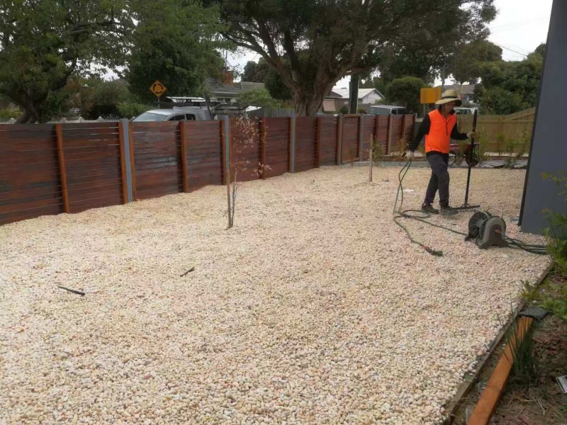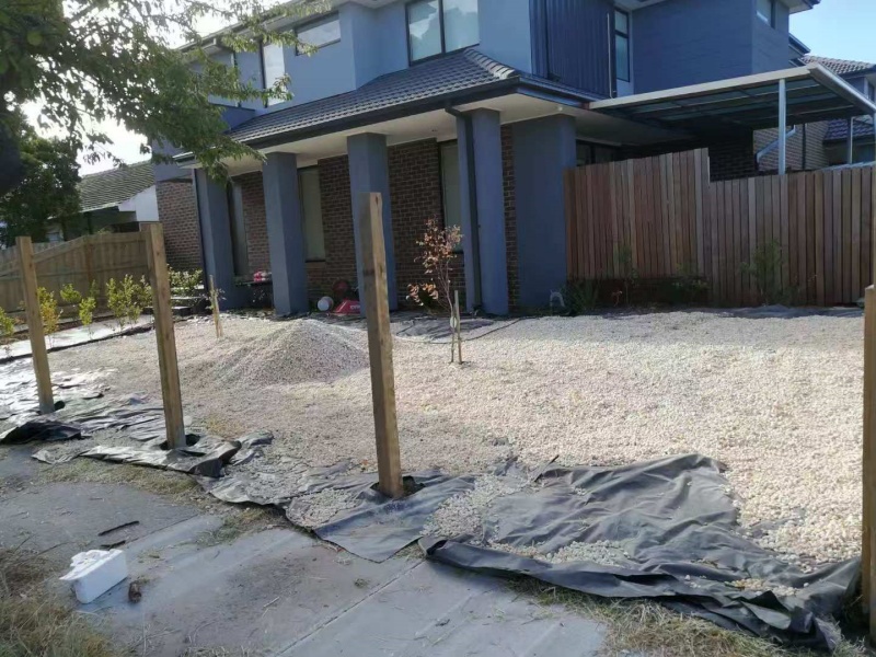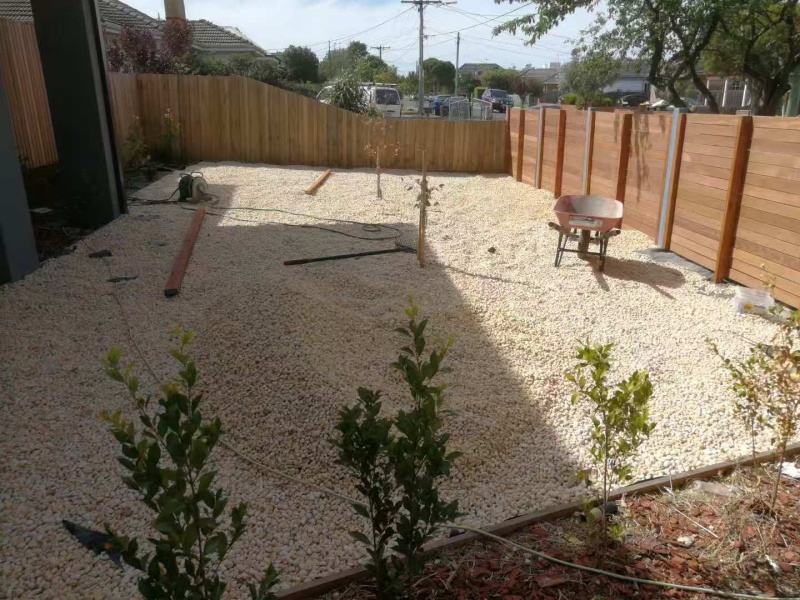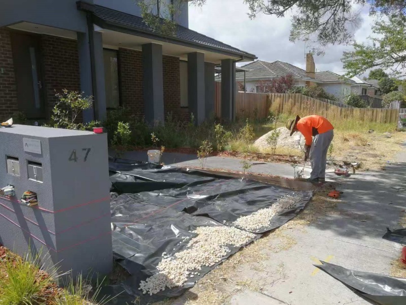 墨尔本庭院施工改造前院115平方鹅软石防草处理完工