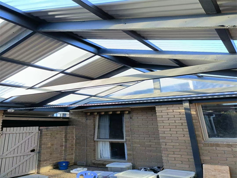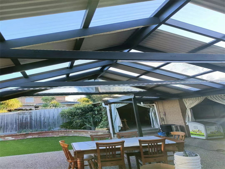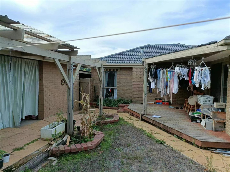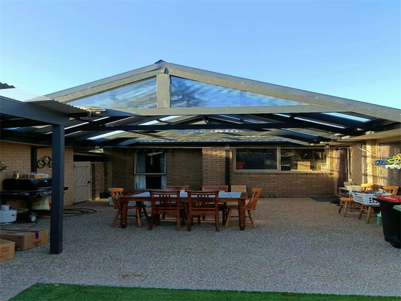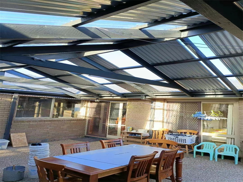 墨尔本后院改造,人字顶顶棚,人工假草,水洗石水泥地面