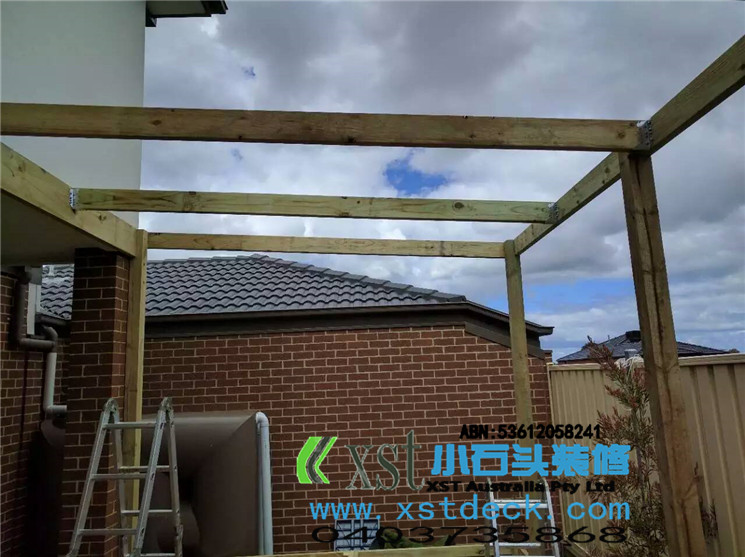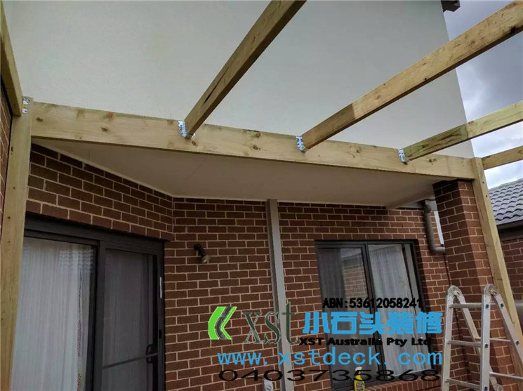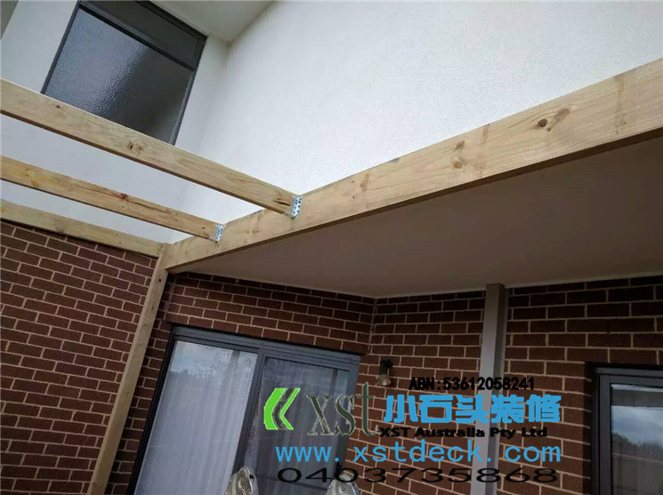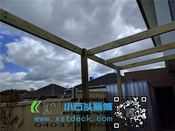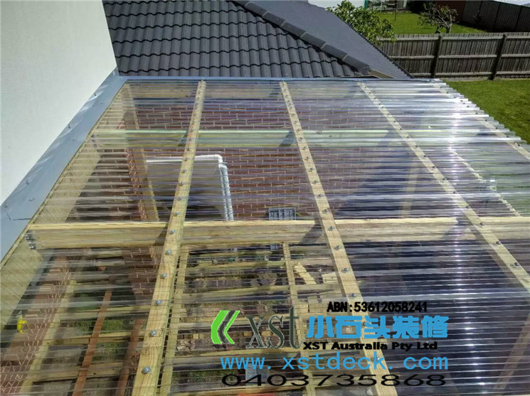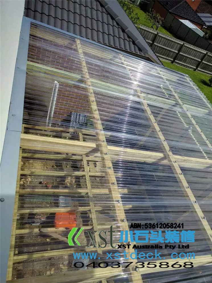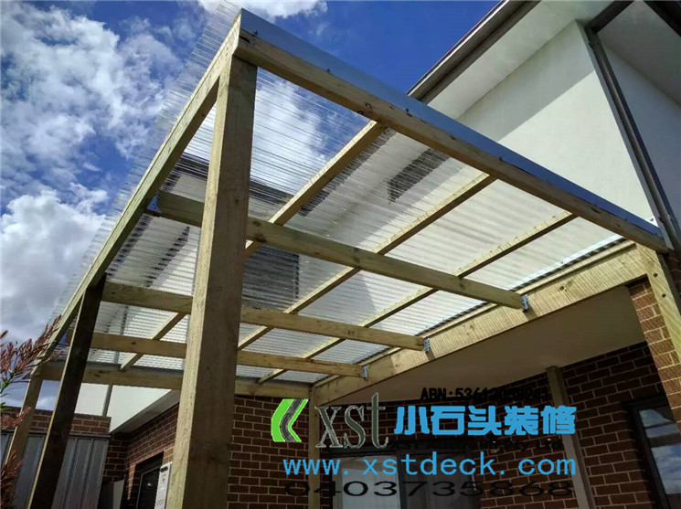 墨尔本 pergola 17平方透明顶凉棚,可以看出蓝天很蓝,4.2米跨度240cm宽横梁