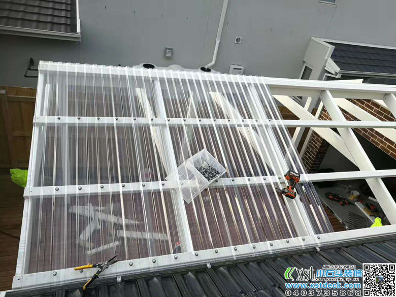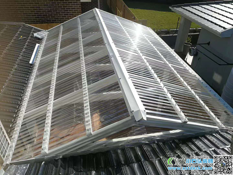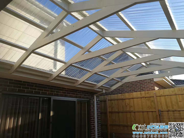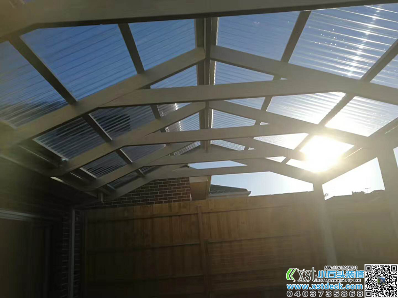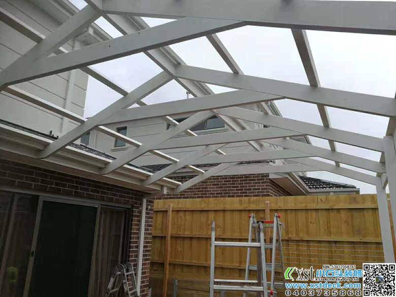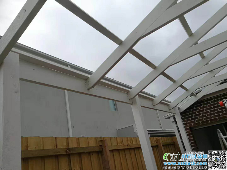 墨尔本 6*4.2人字体凉棚 雨棚 pergola 白色油漆 透明顶棚