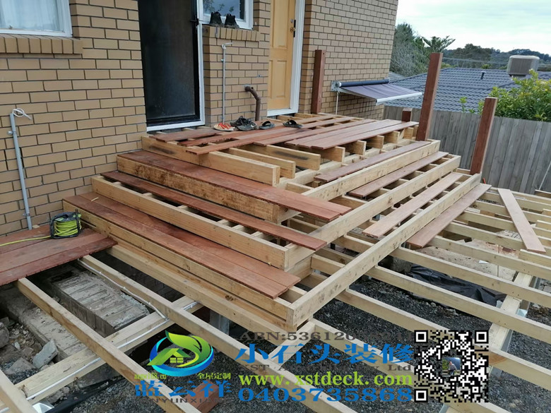 墨尔本户外大型凉棚 pergola,户外地板decking,玻璃围栏,拉钢丝扶手。