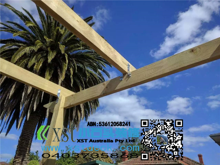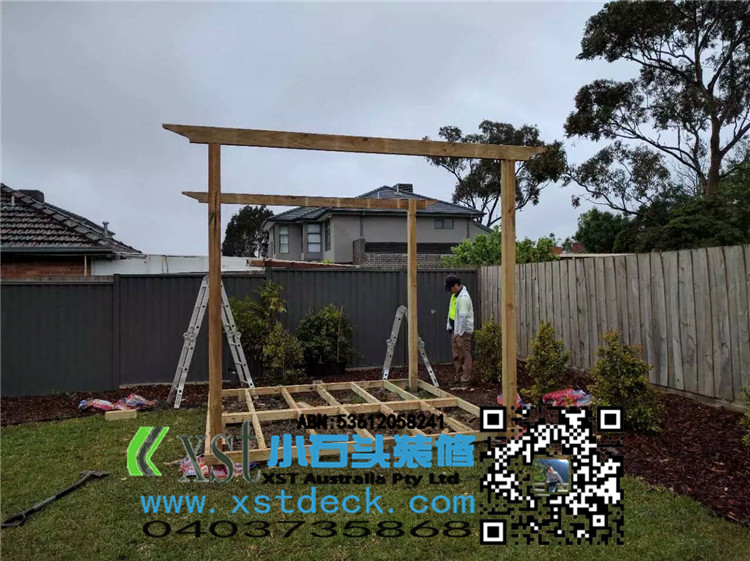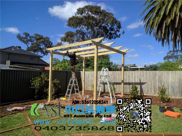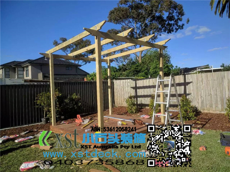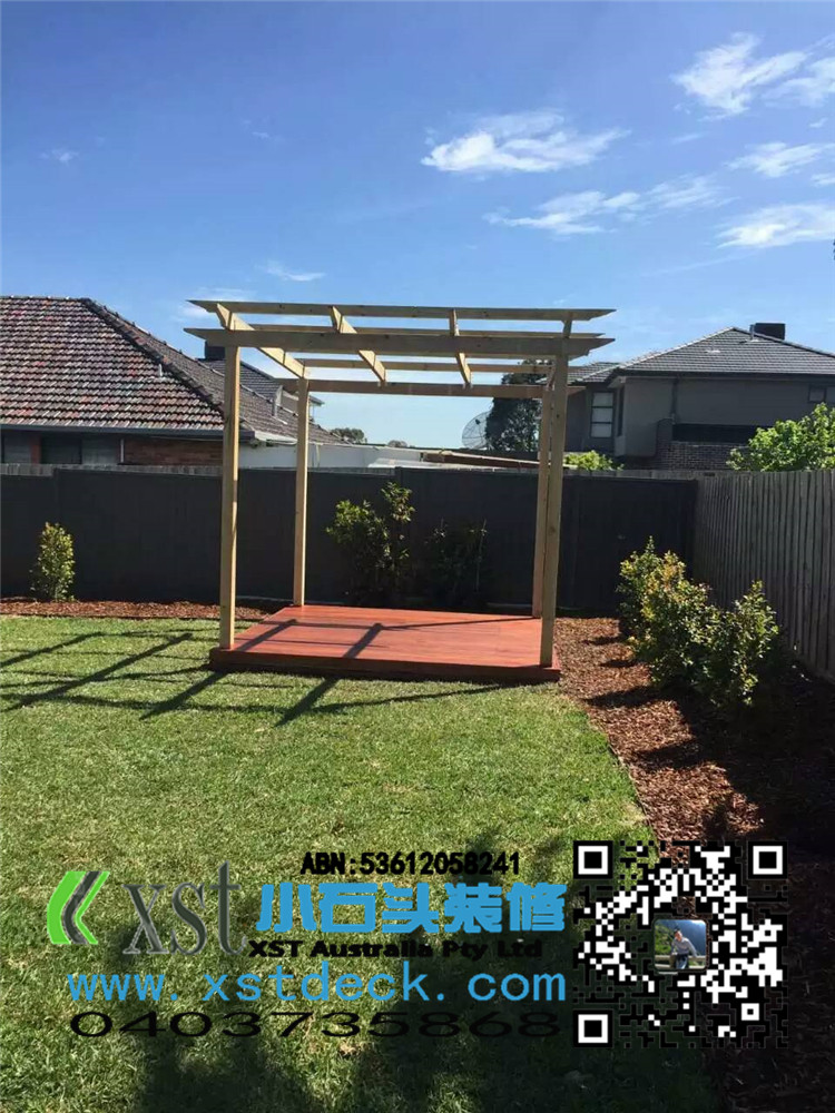墨尔本 decking 9平方户外地板 中国风葡萄架