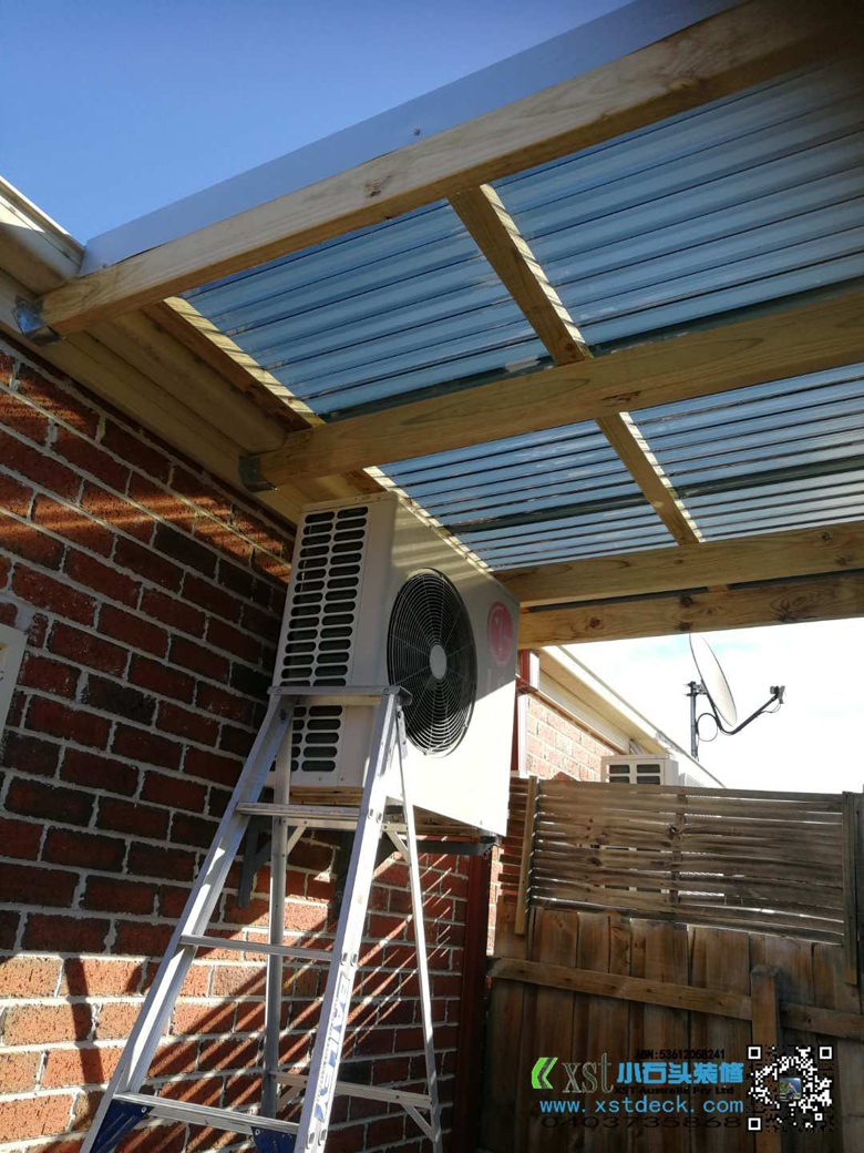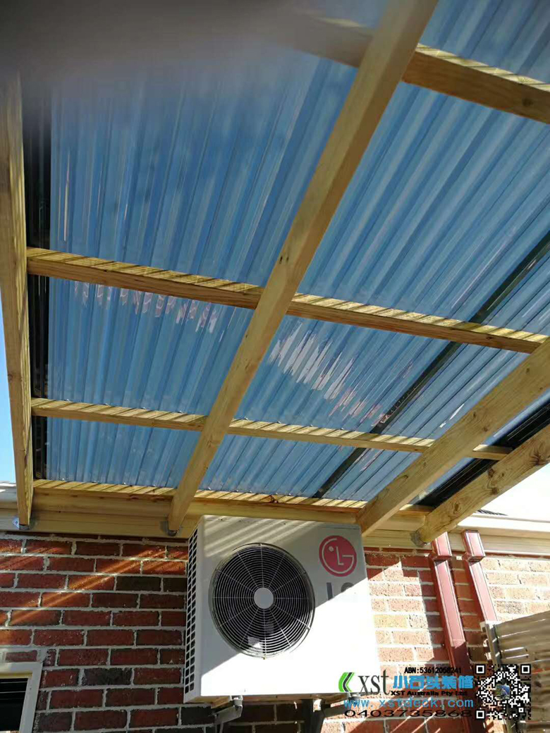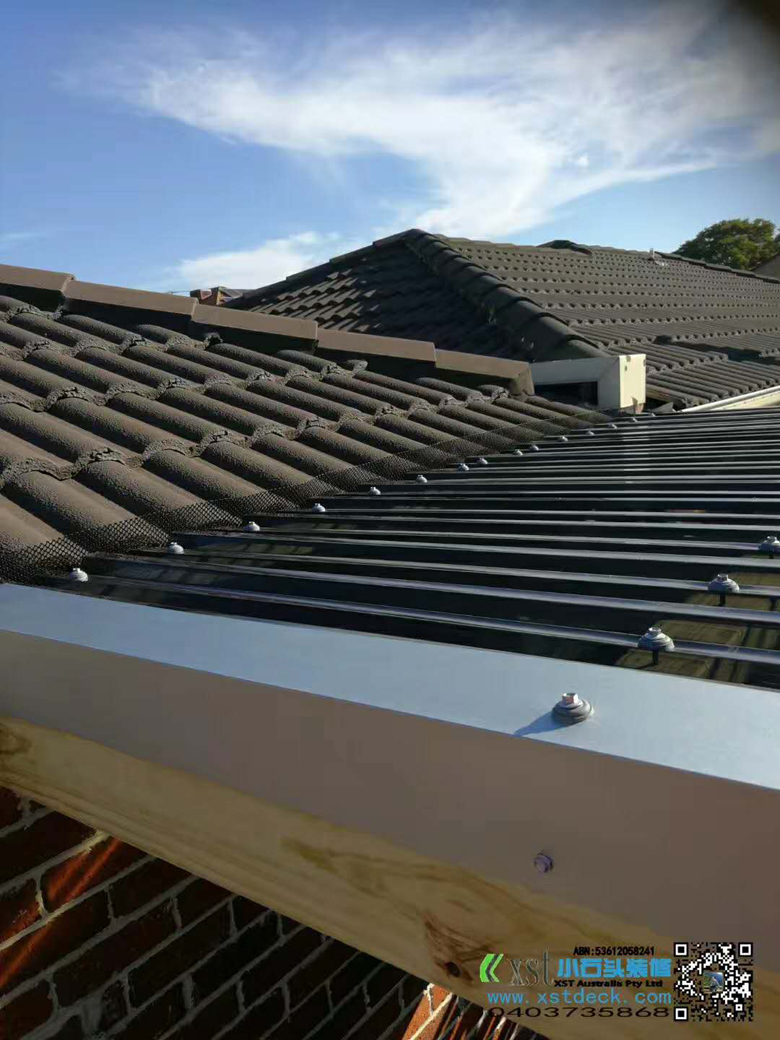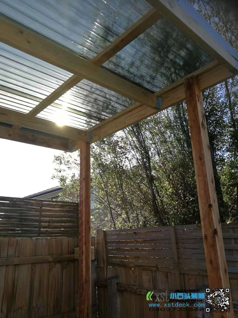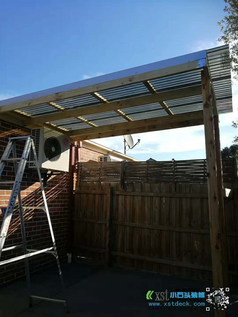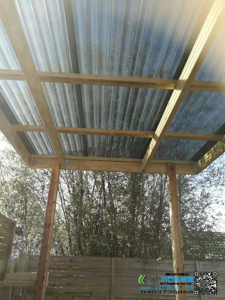墨尔本pergola,墨尔本凉棚,墨尔本雨棚,墨尔本凉亭,melbourne pergola ,2.4*3*6,3米高,青黑色顶,原木色木梁