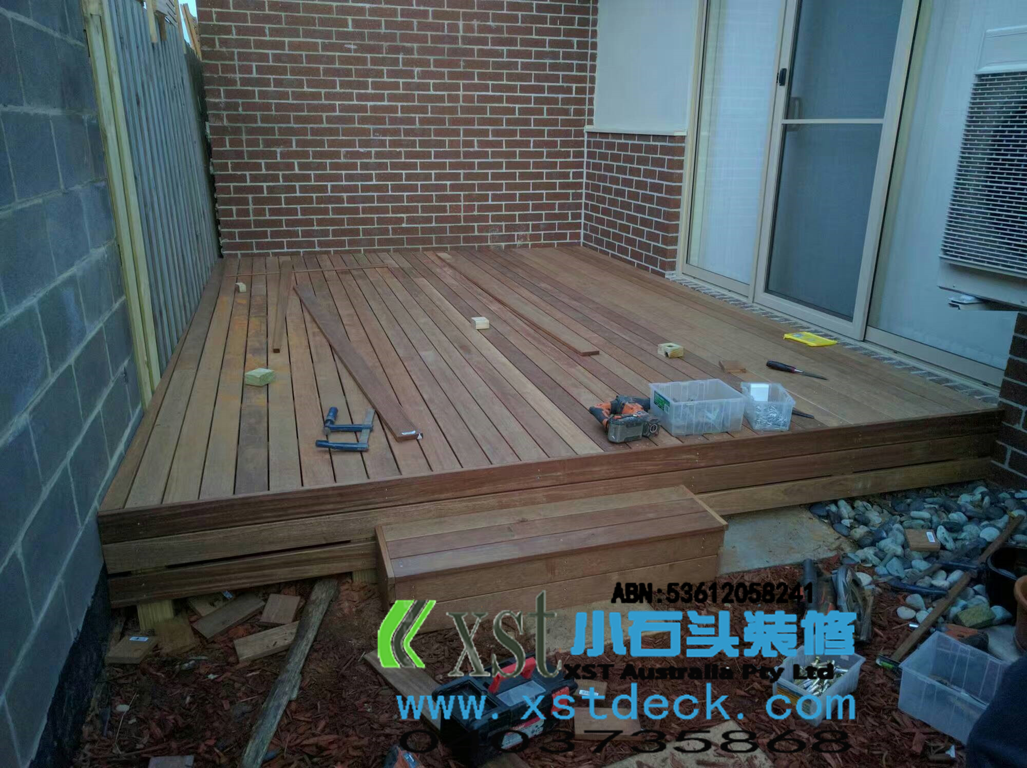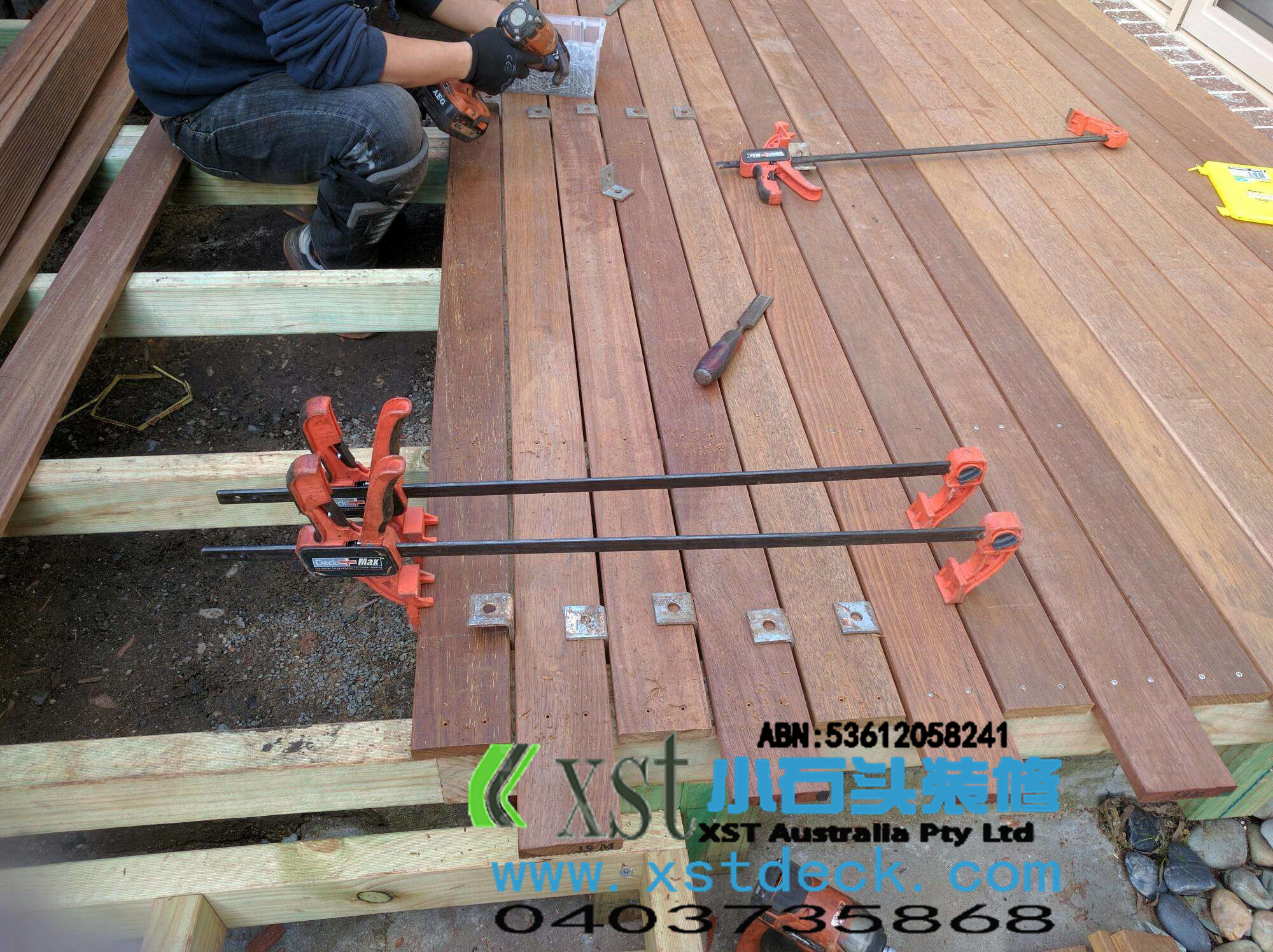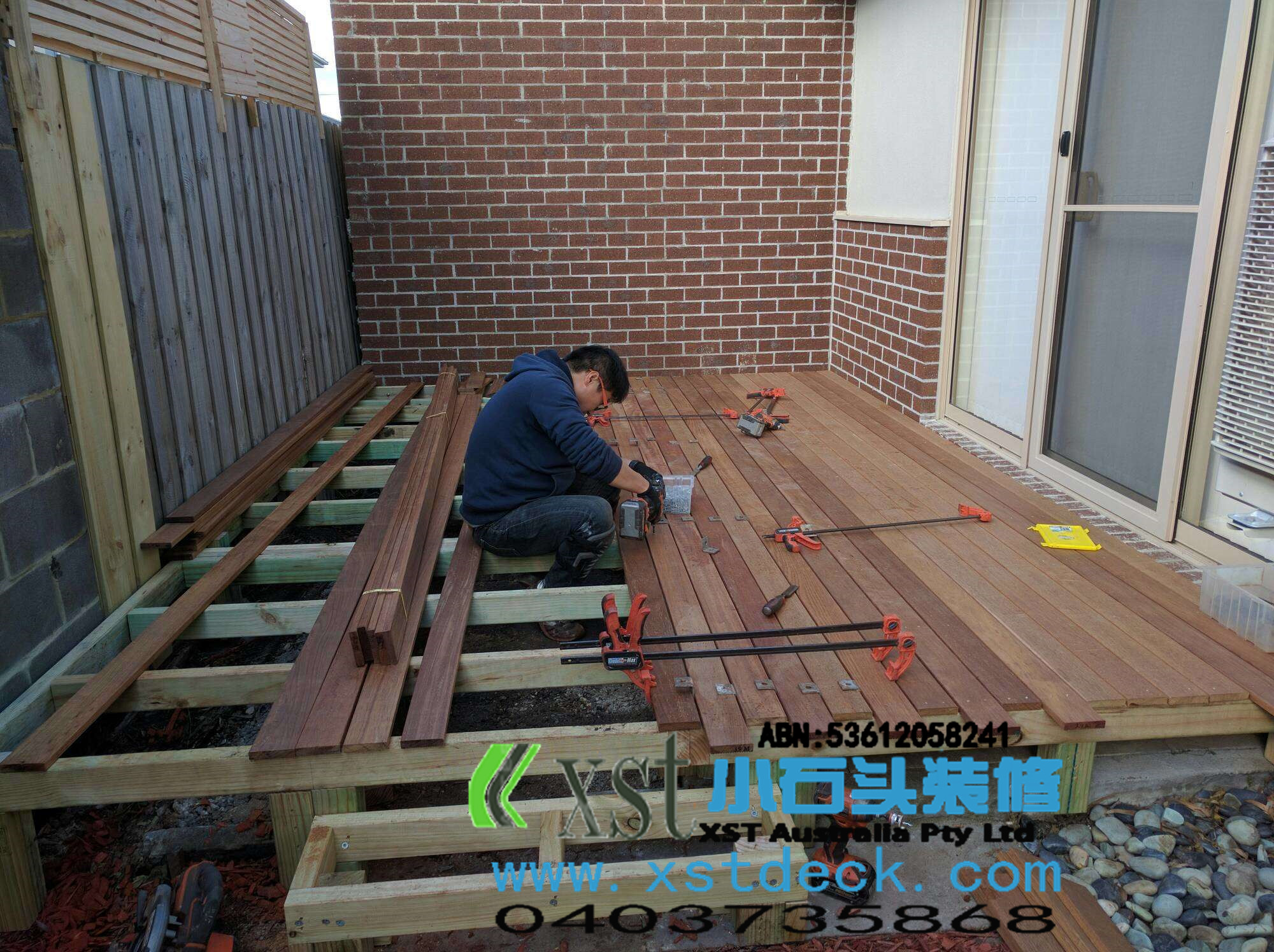 墨尔本 decking 13平户外地板 decking 楼梯,每个decking板间的缝隙,我们都控制在5毫米左右