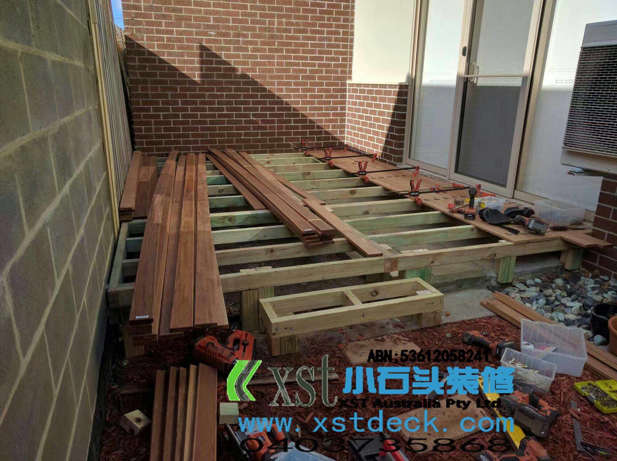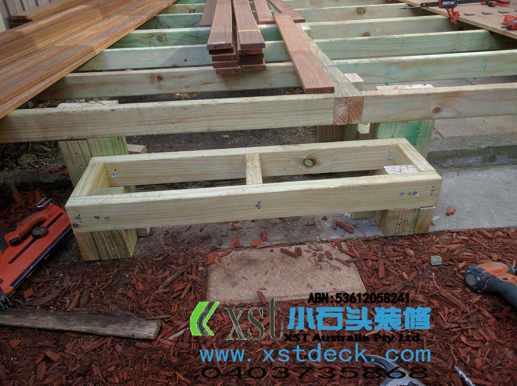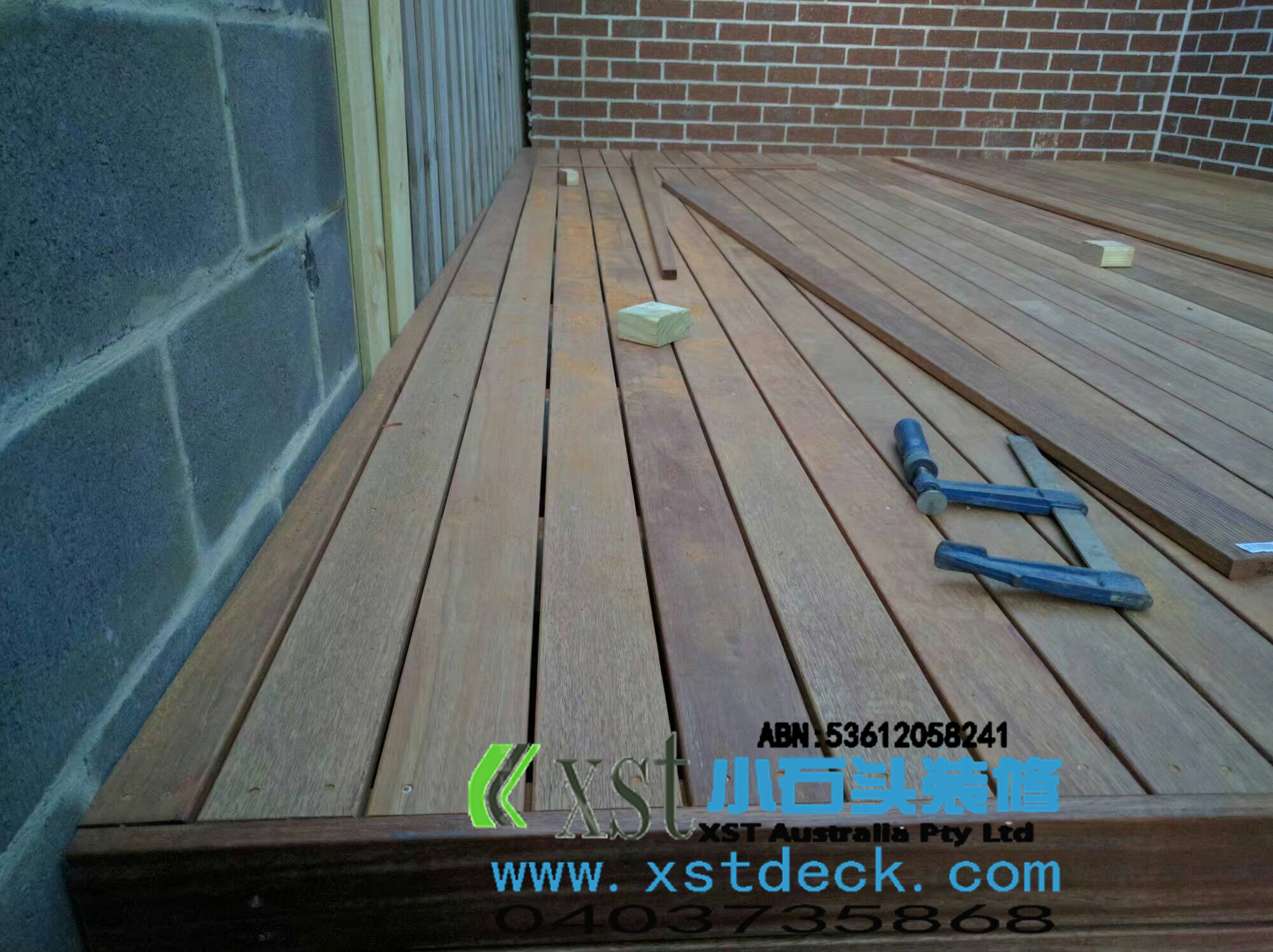 墨尔本 decking 13平户外地板 decking 楼梯,每个decking板间的缝隙,我们都控制在5毫米左右