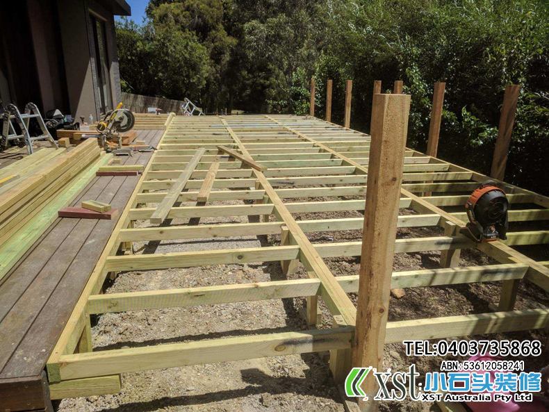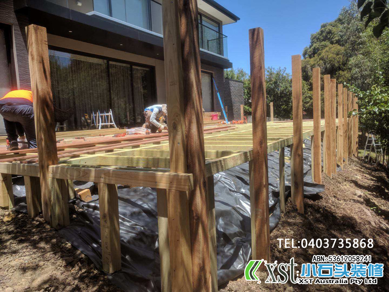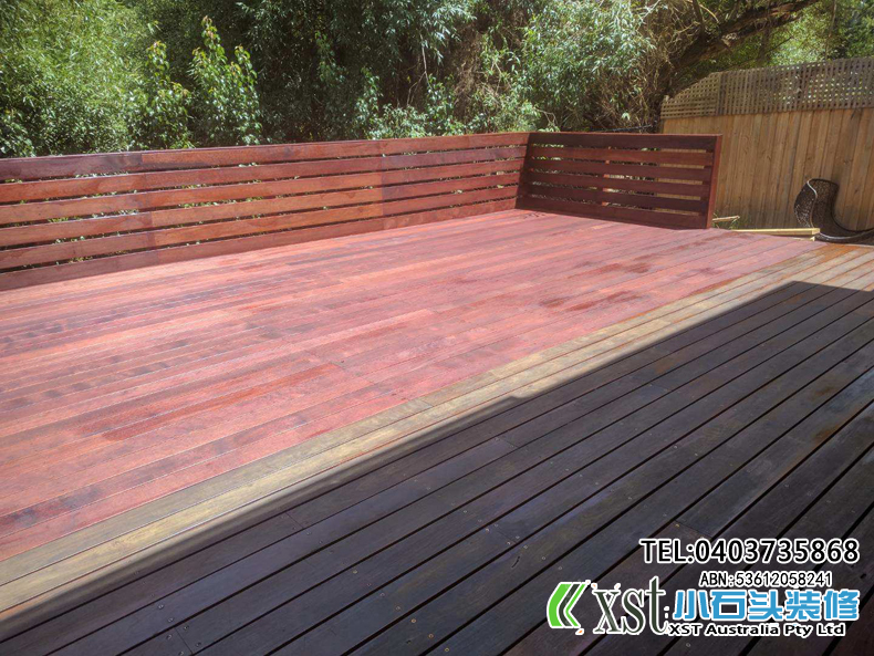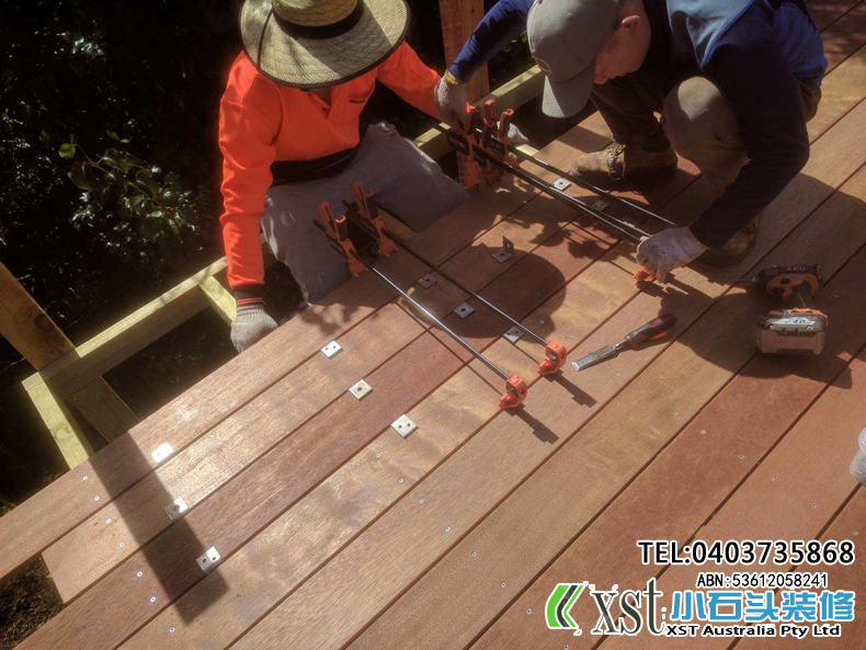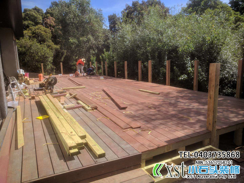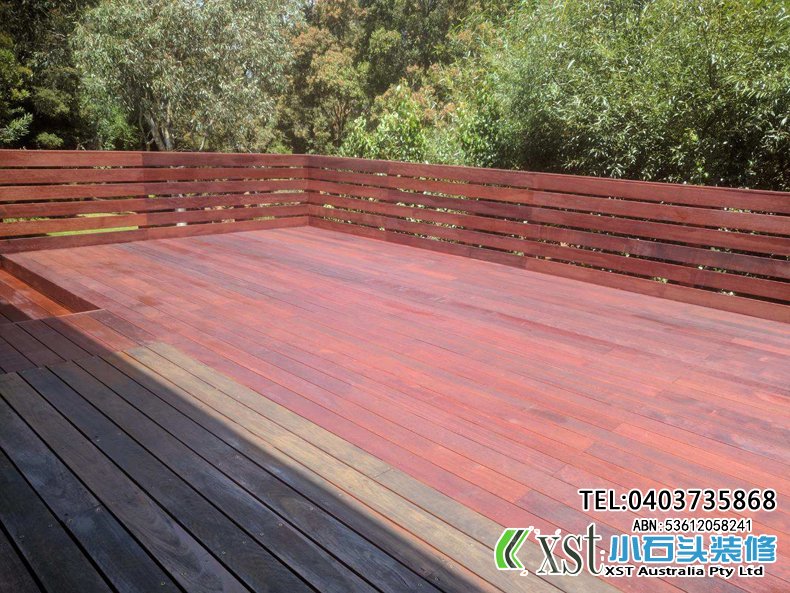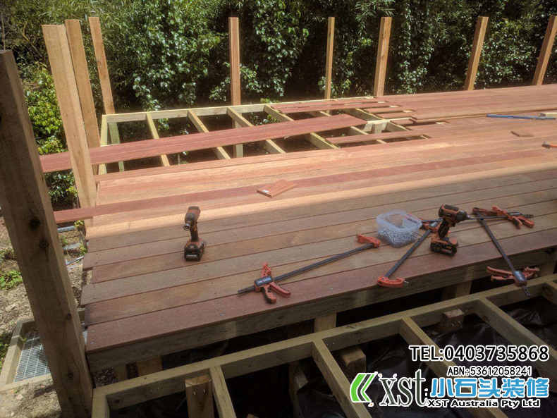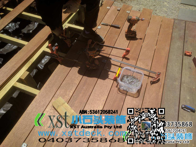 墨尔本 户外地板,140*19 merbau decking 4m*14m 架高1m 不锈钢螺丝锁板