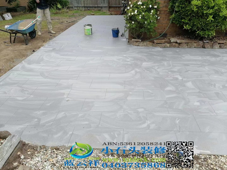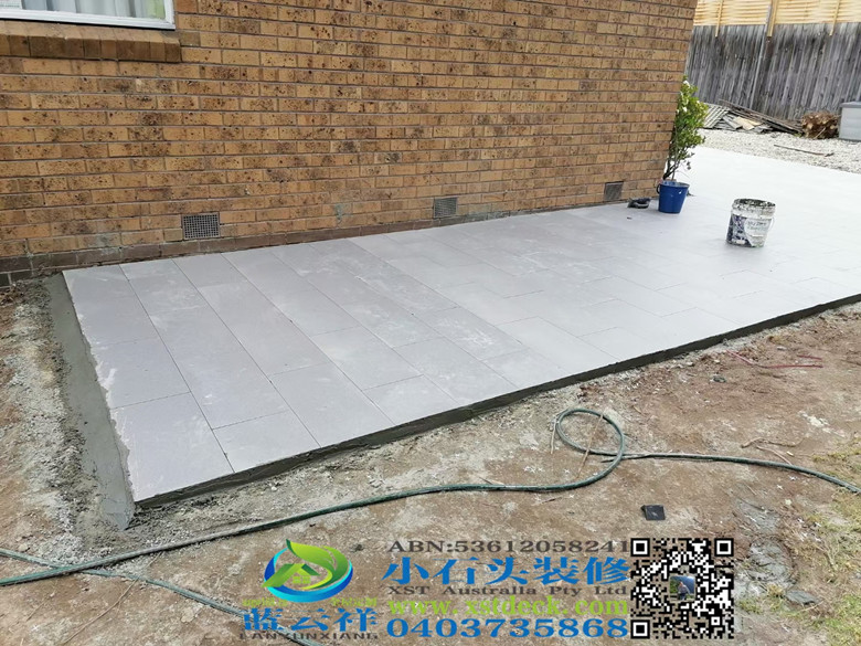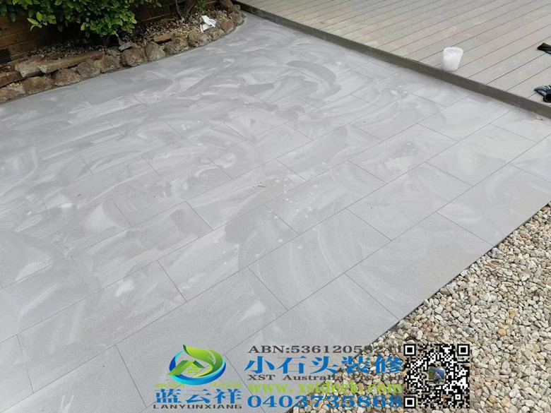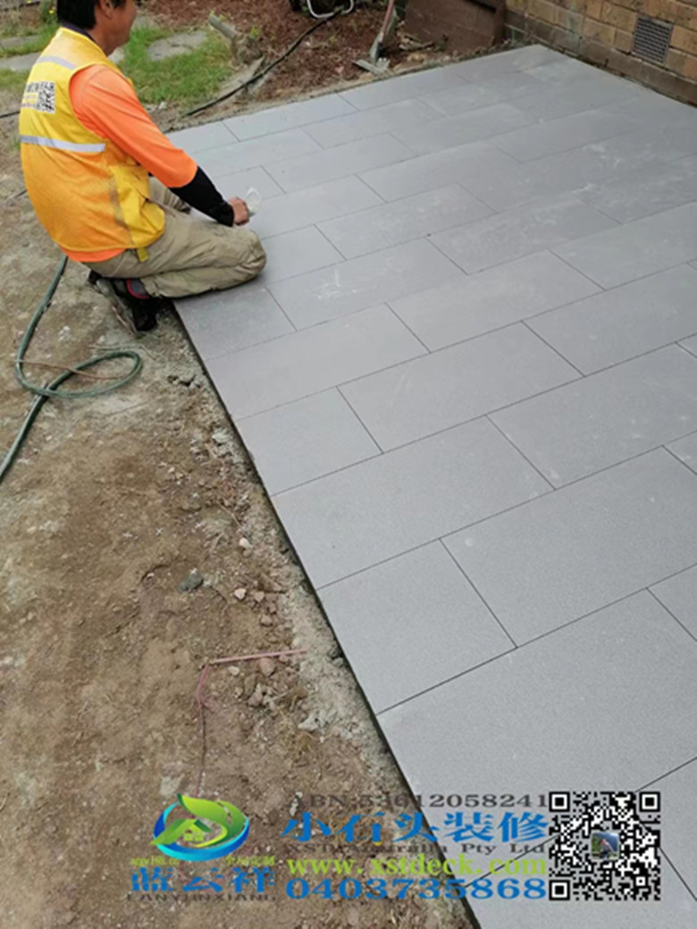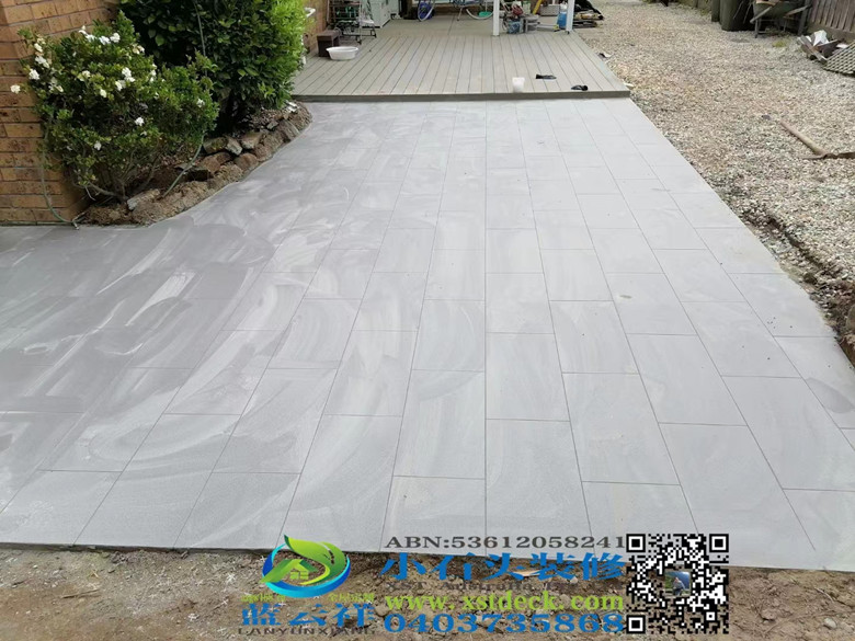 澳大利亚,墨尔本,室外300X600青灰色地砖,水泥打,勾缝处理。
