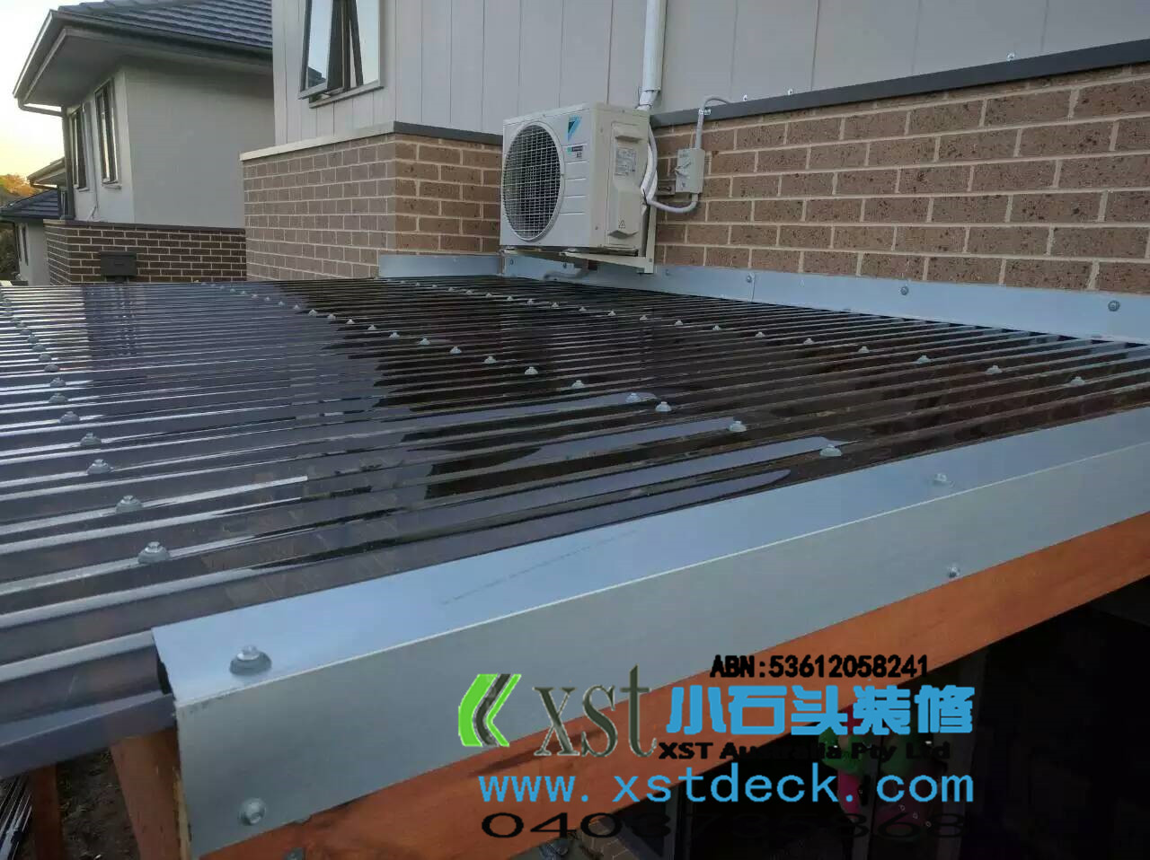 墨尔本pergola 8平方凉棚3.7米跨度,三面L型铁皮包边,防水处理,油漆保护。