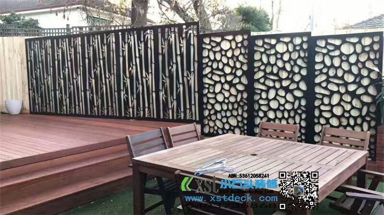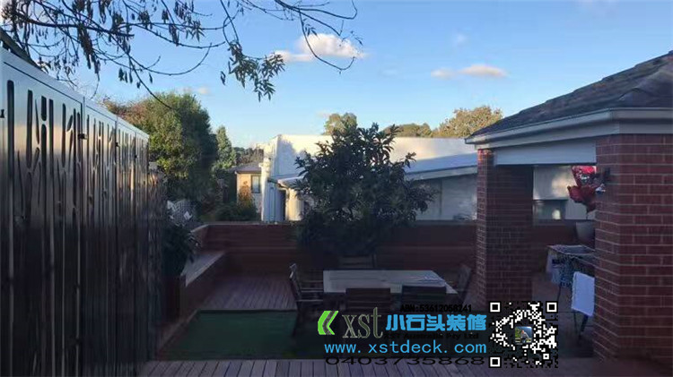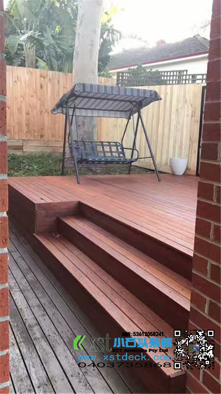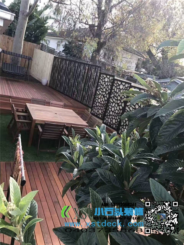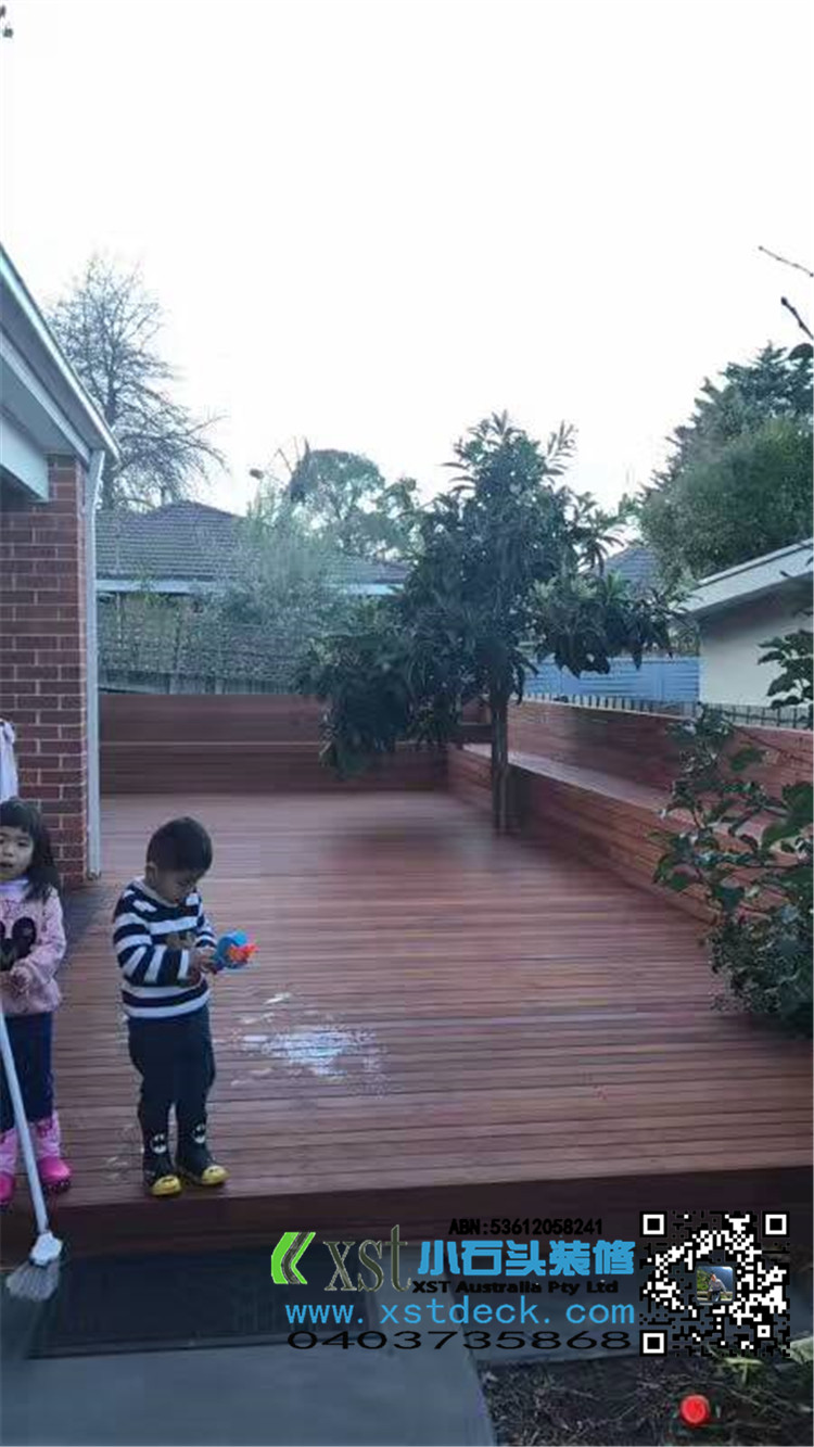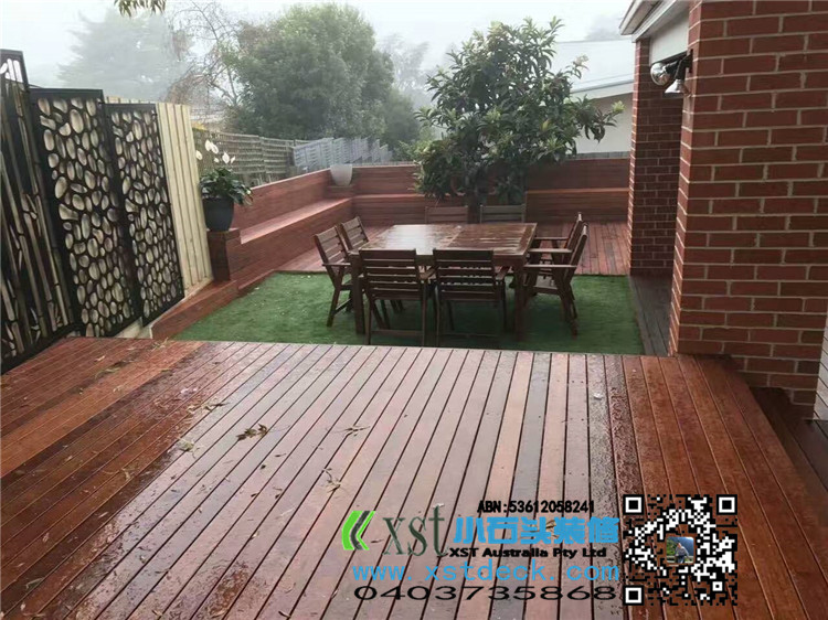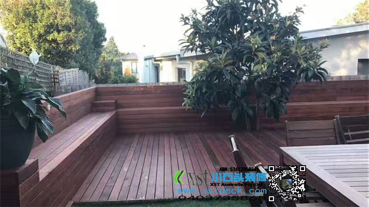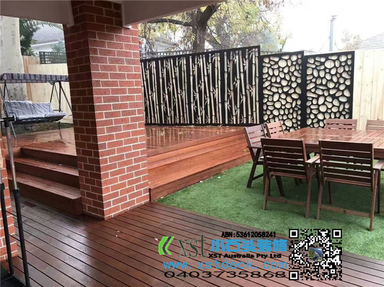 墨尔本 户外地板 merbau decking 背靠长凳 铁艺装饰围栏 最终效果图展示
