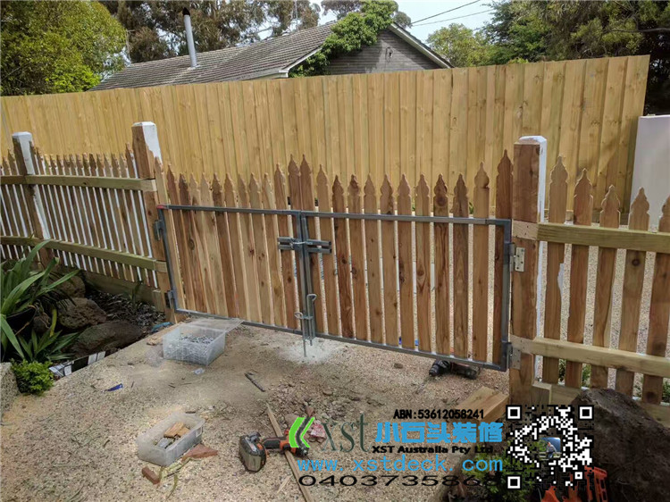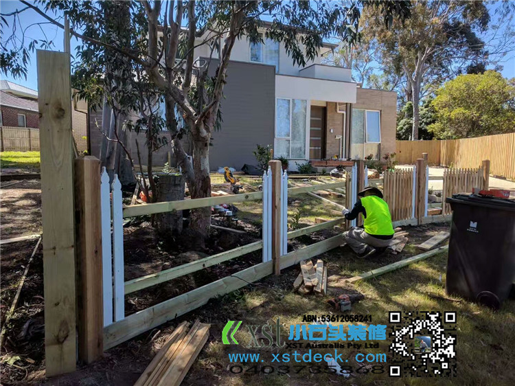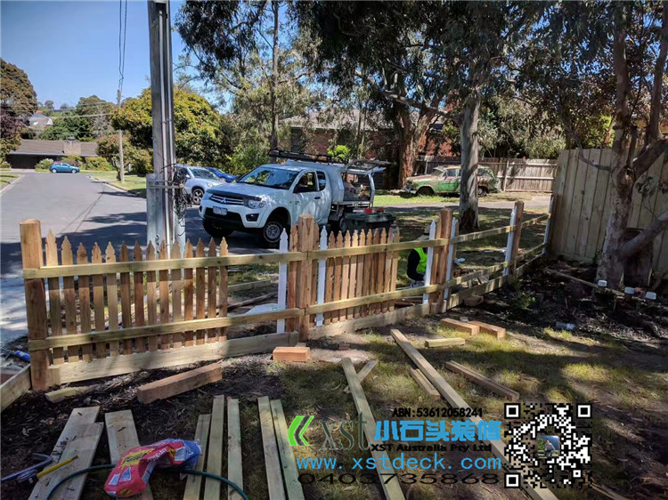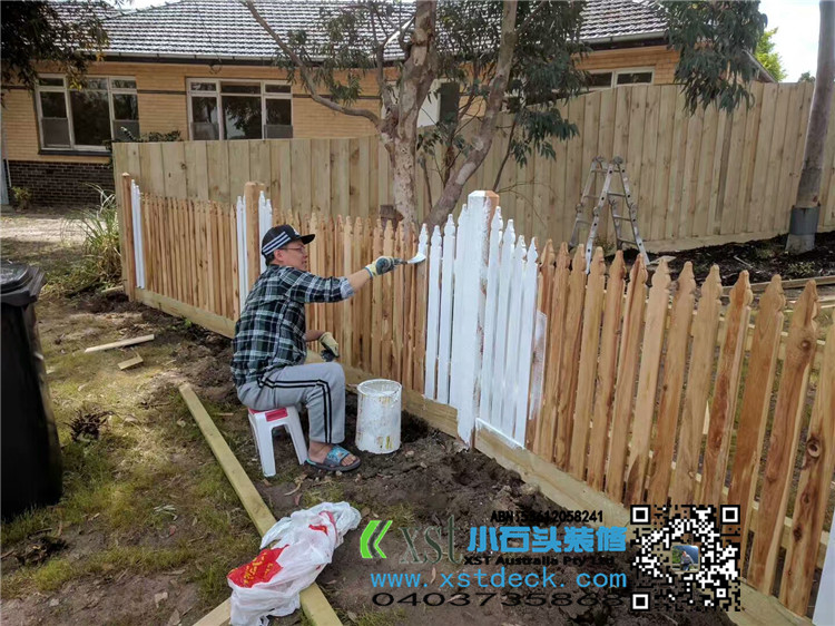 墨尔本 前院围围栏 26m 1.15~1.3m pick fence 铁宽架,双开门。白色油漆