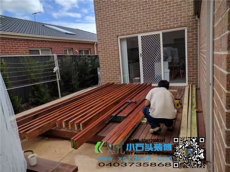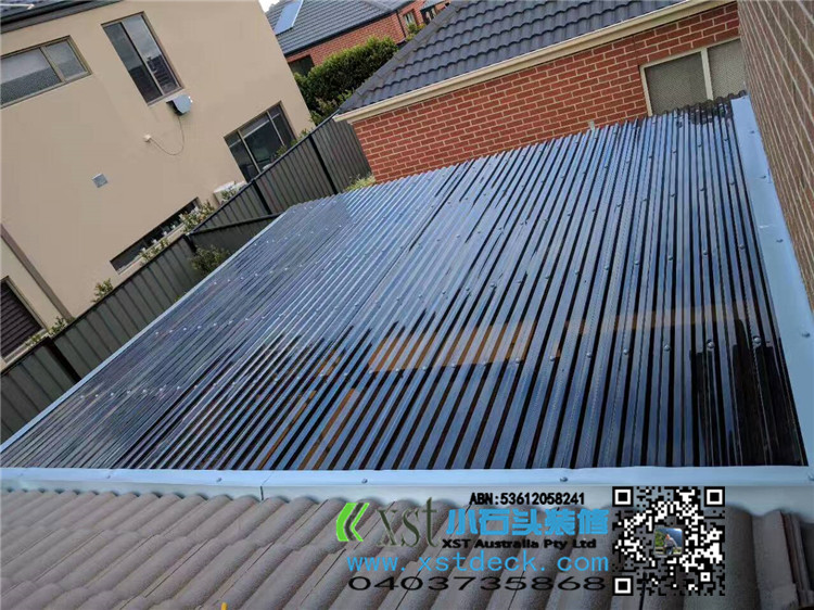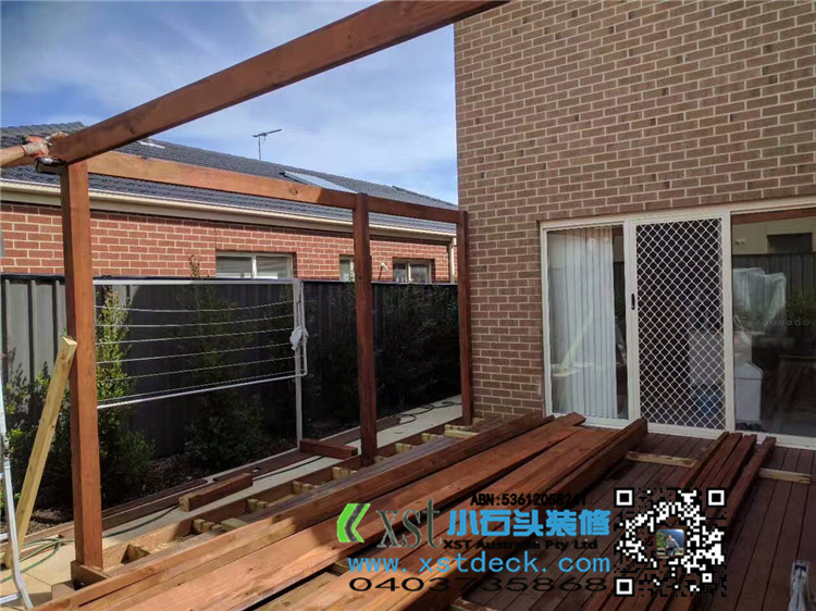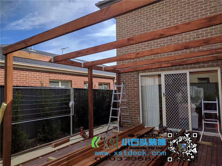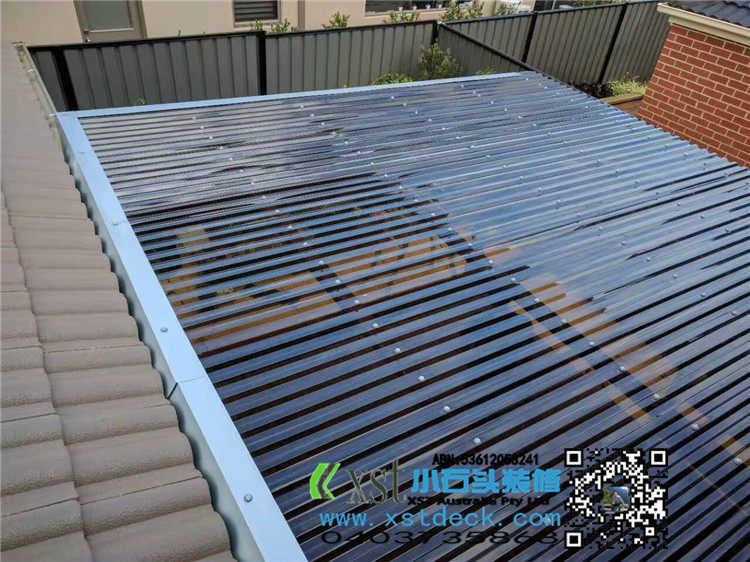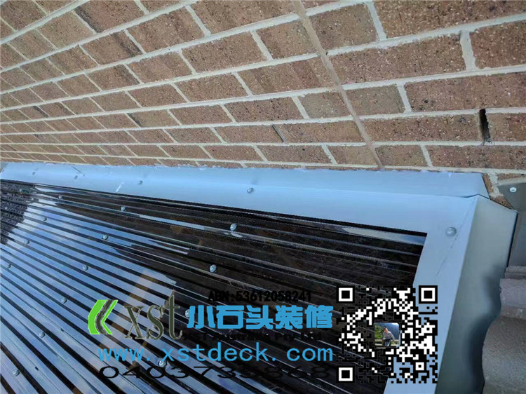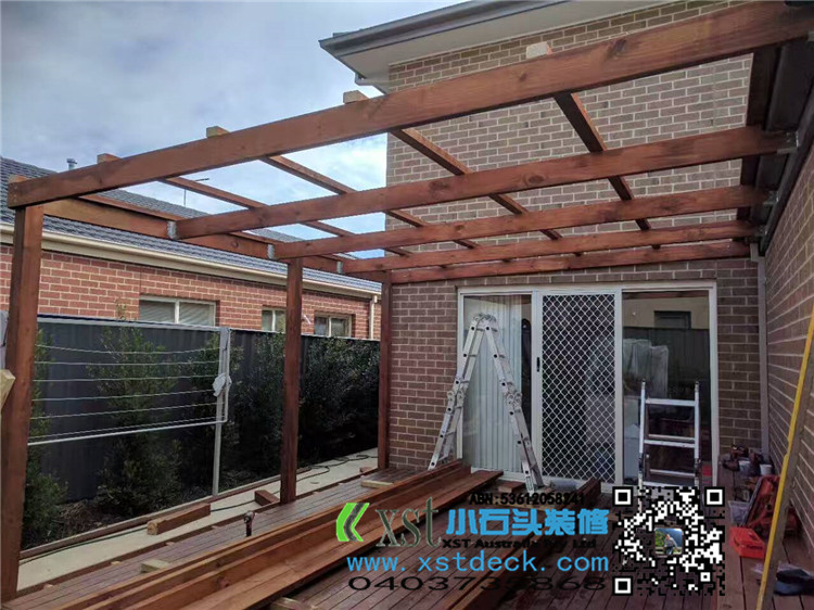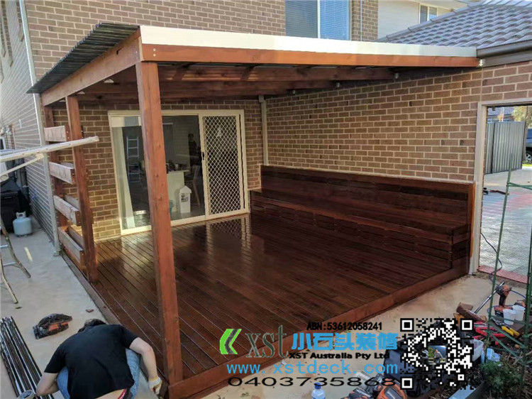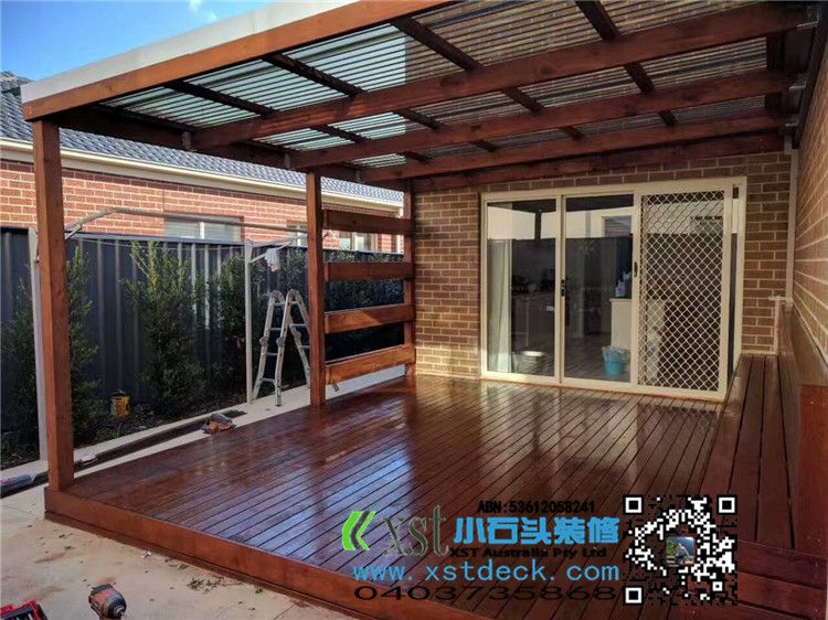 墨尔本 4.2mx4.5m perloa 19平方凉棚 三面L型包铁,缝漏水处理 merbau decking油色