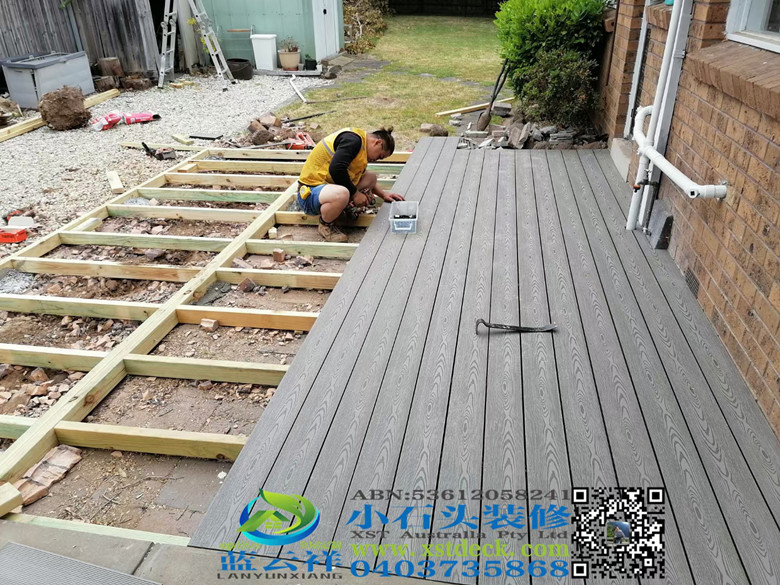 墨尔本塑木140X22仿木纹灰白色 decking ,正面无螺丝3.65M