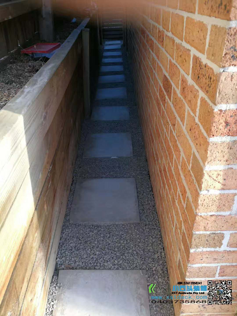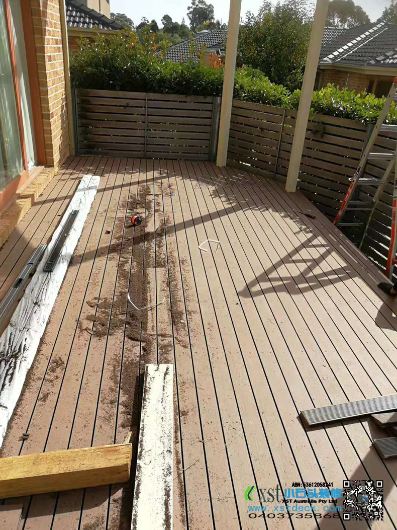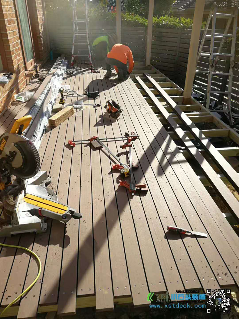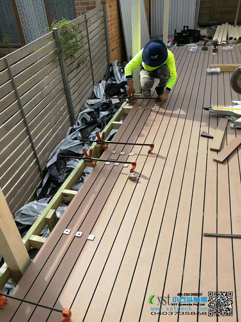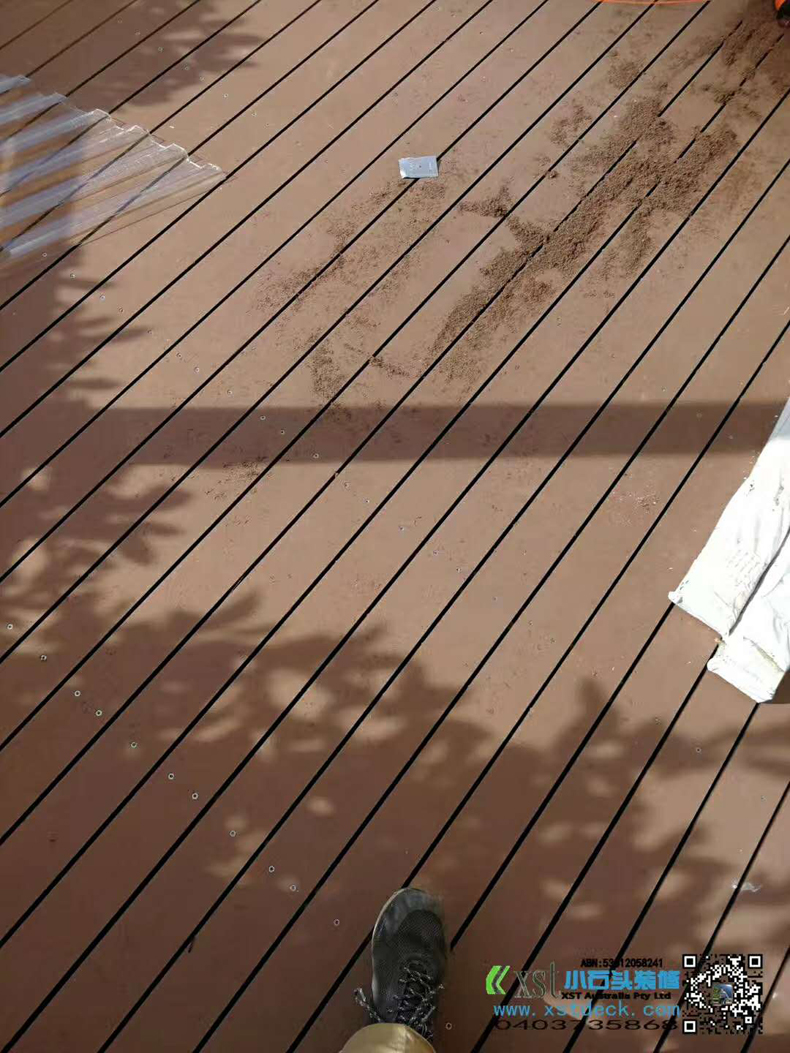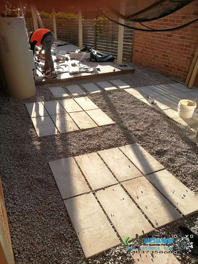 澳大利亚墨尔本 户外地板 塑木3m*8m 免油漆保养 不锈钢螺丝锁板 青灰色花园鹅卵石,灰色300m*600m方砖