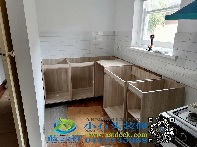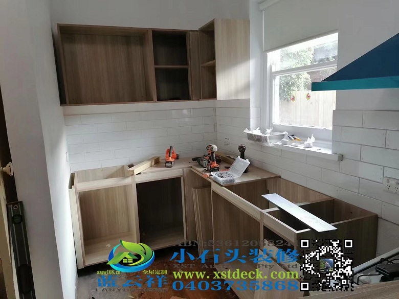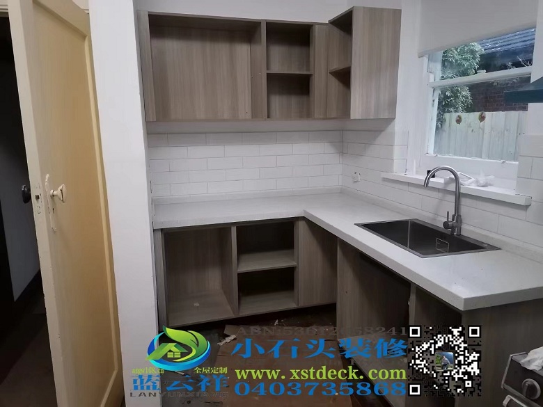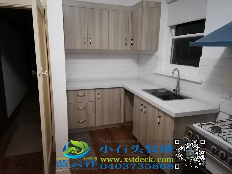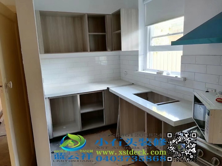 墨尔本厨房改造翻新,石英石台面,多层实木面板。