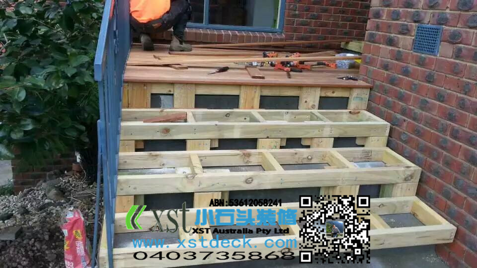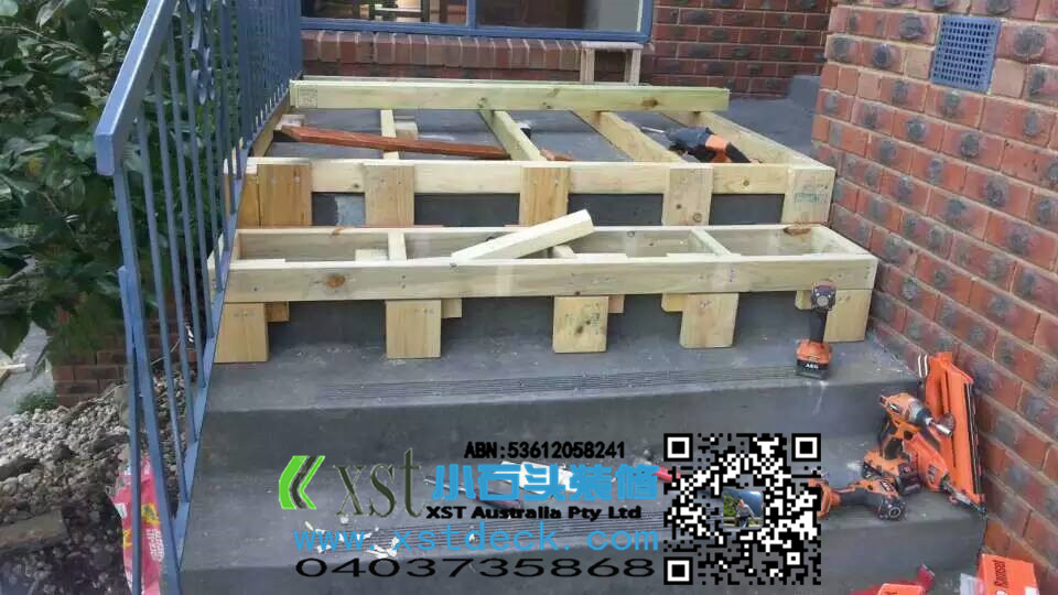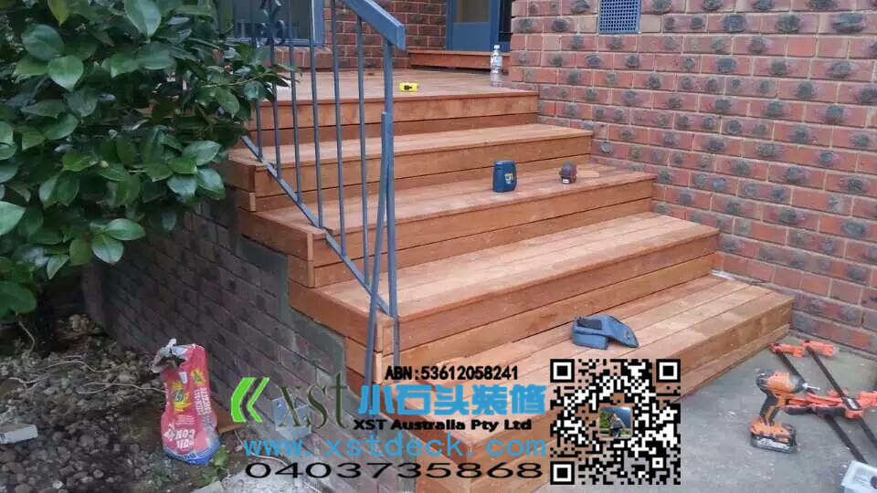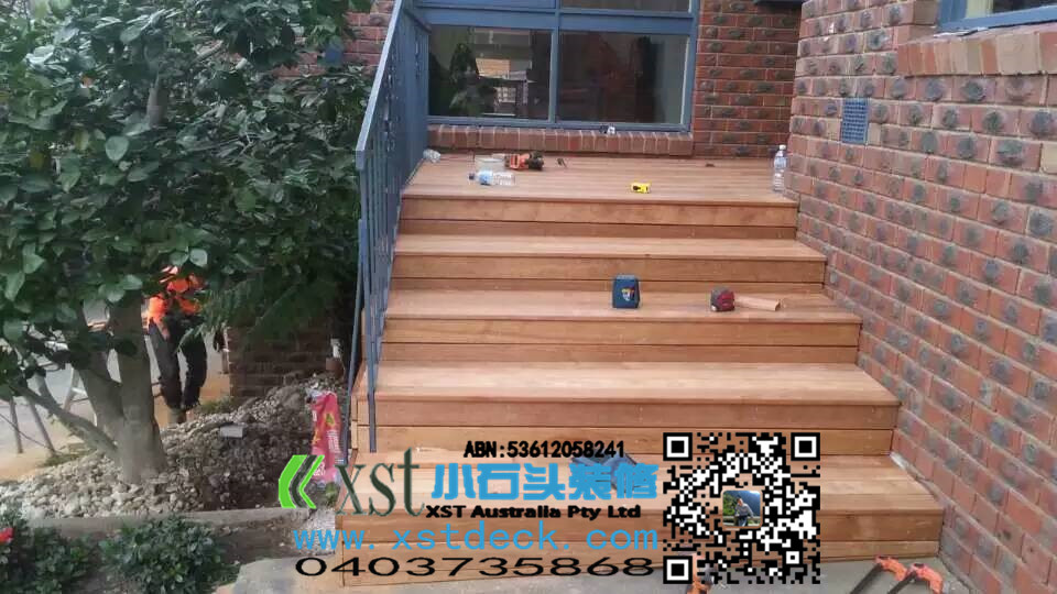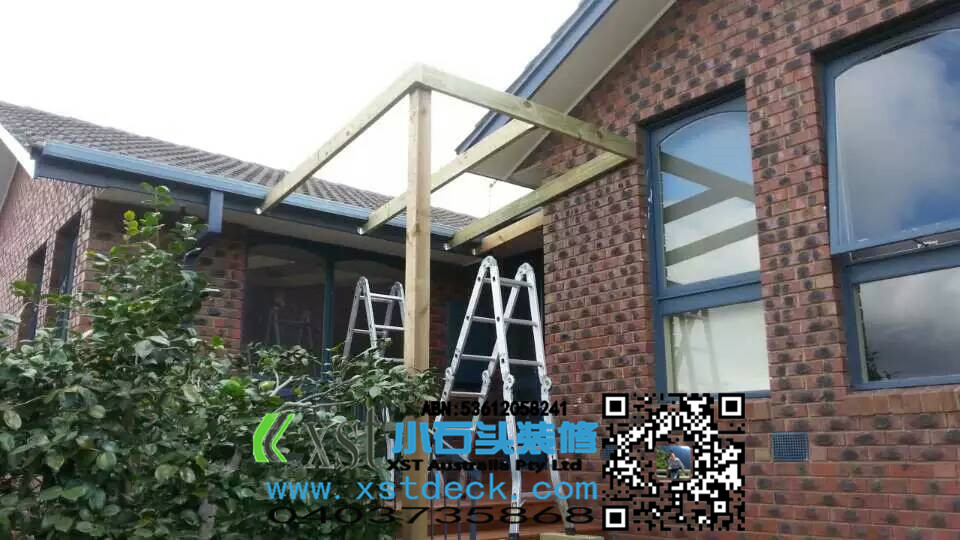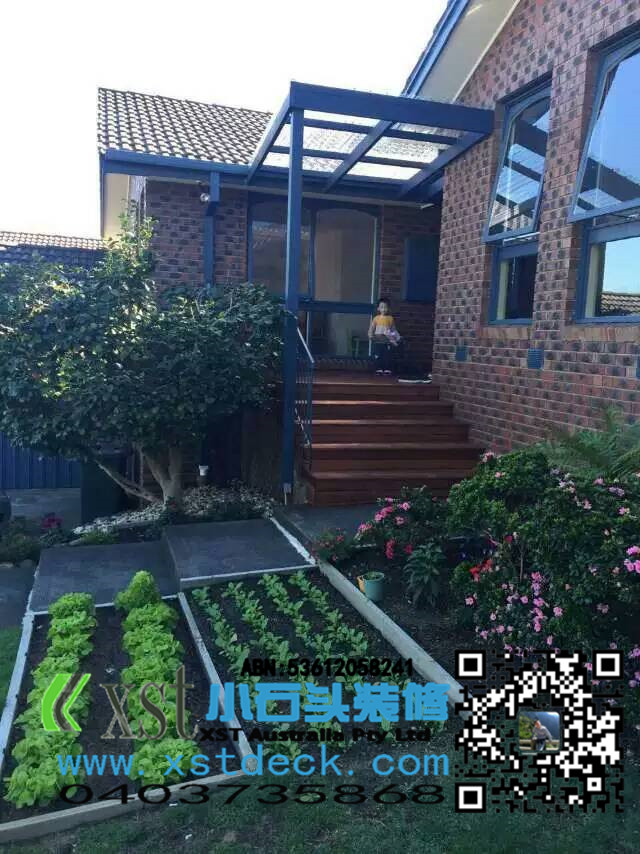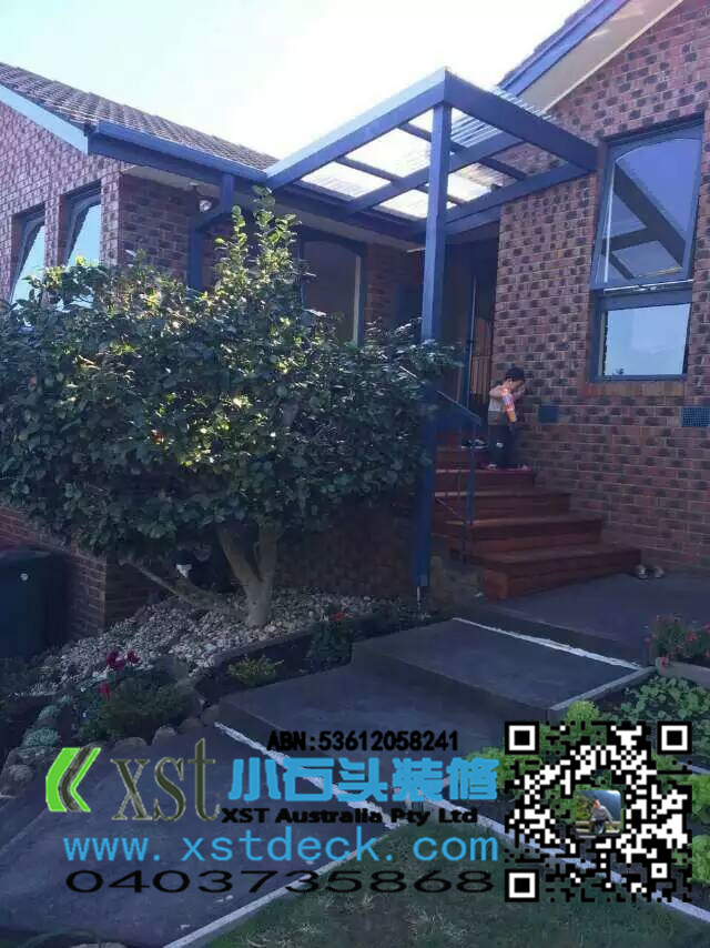 前面门庭小凉棚,水泥楼梯改造成dencking楼梯,改造完成漂亮多了。。