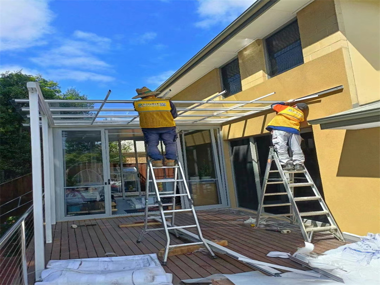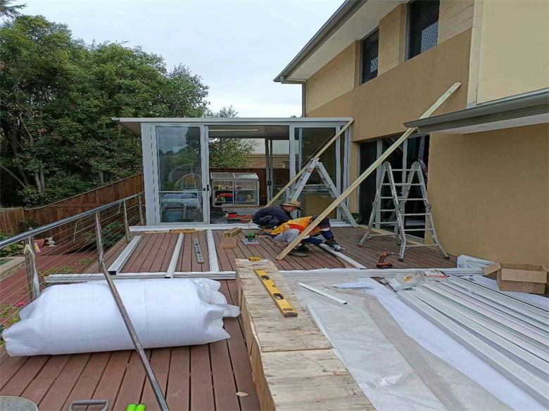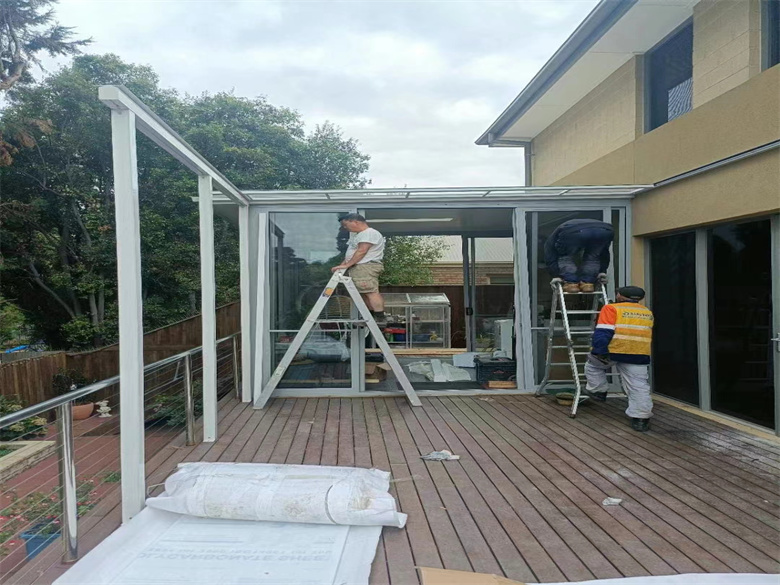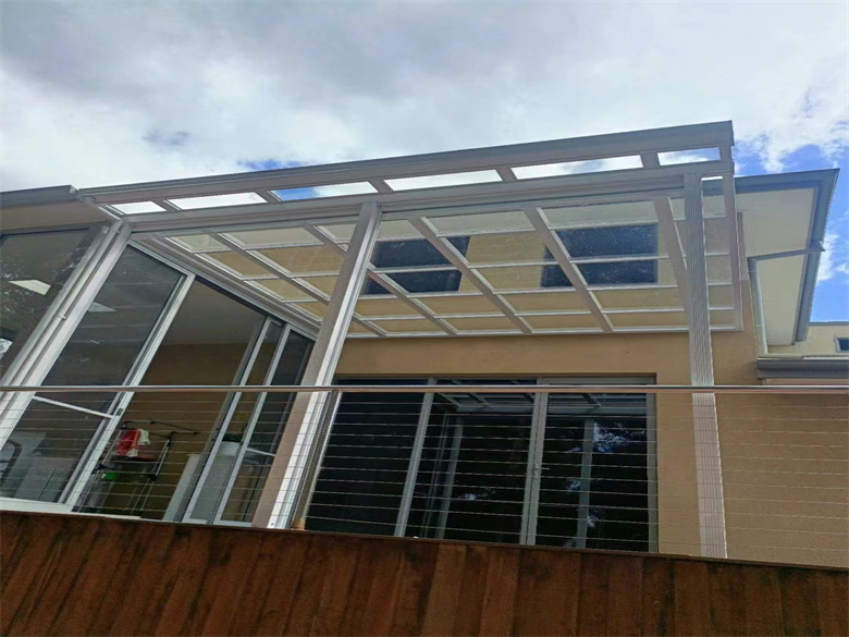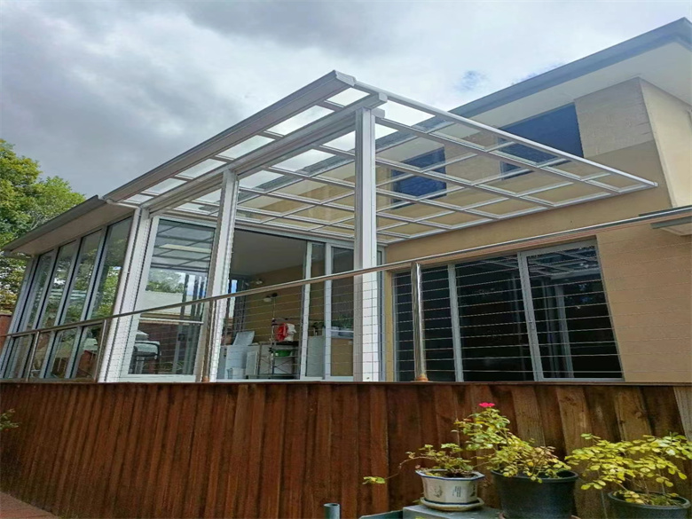 墨尔本户外金属铝合金结构,pc耐力板,电动透明卷帘