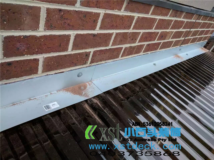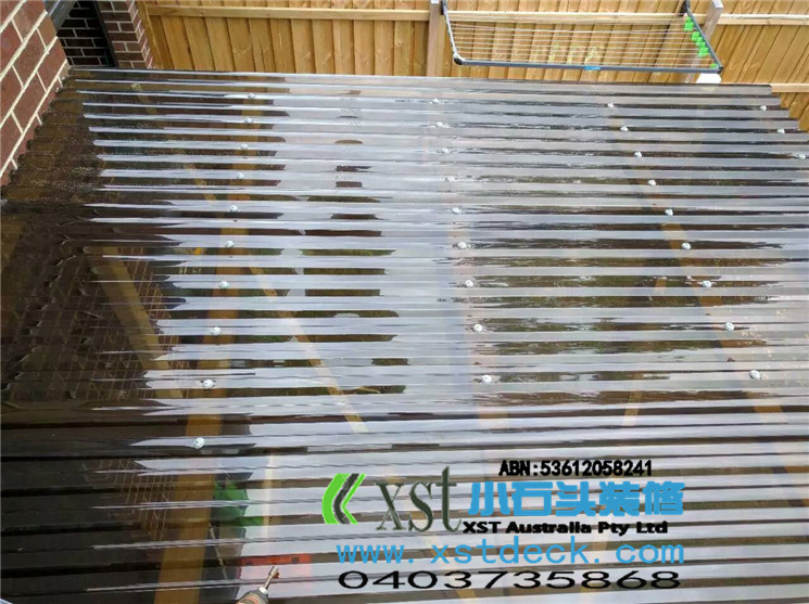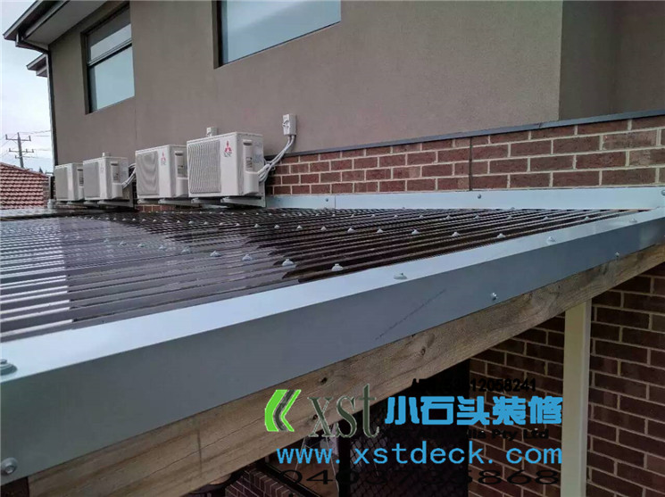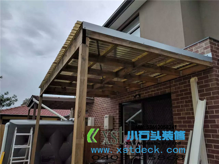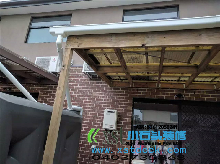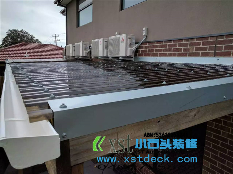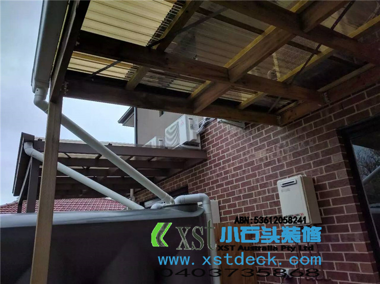 墨尔本 pergola 十平方凉棚,三面铁皮包边,水槽收集雨水