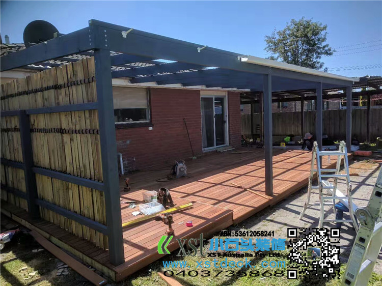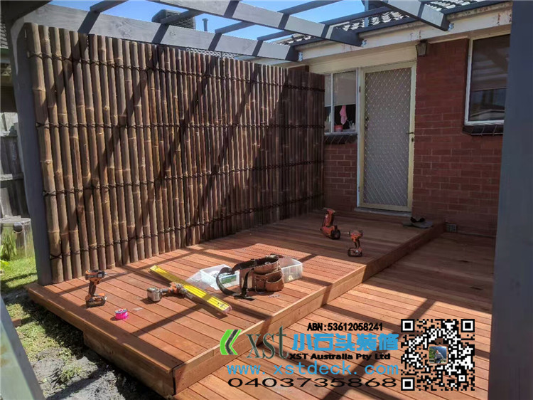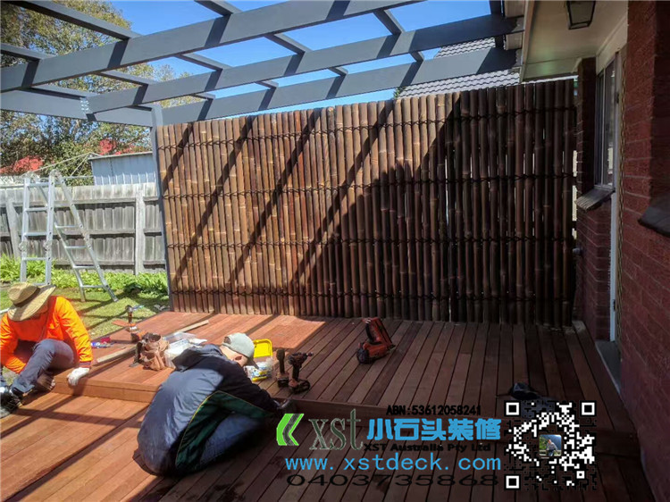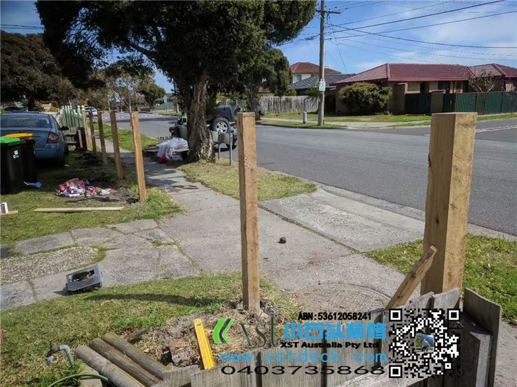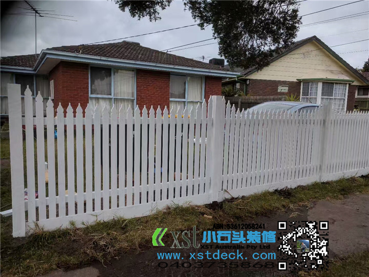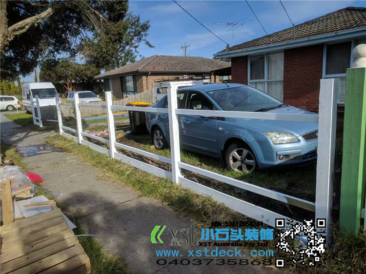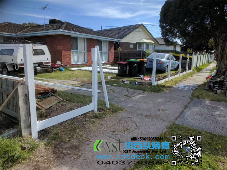墨尔本 前院围栏 柱子带造型 1.35M-1.5M高 白色油漆decking 竹子背景墙,1.8M高