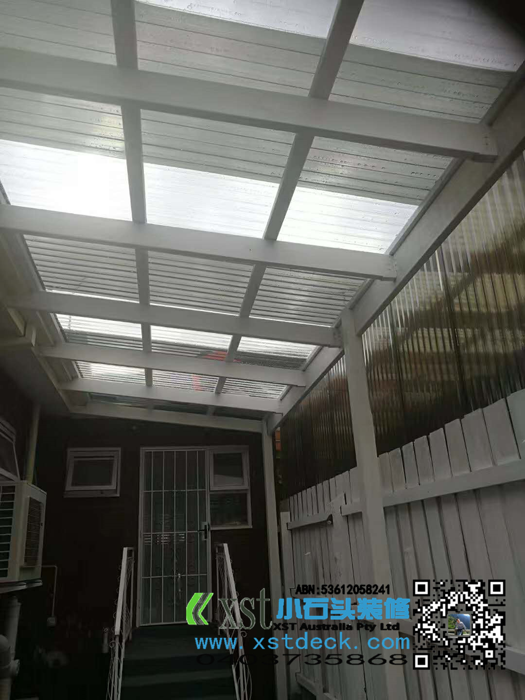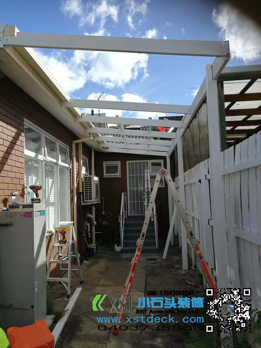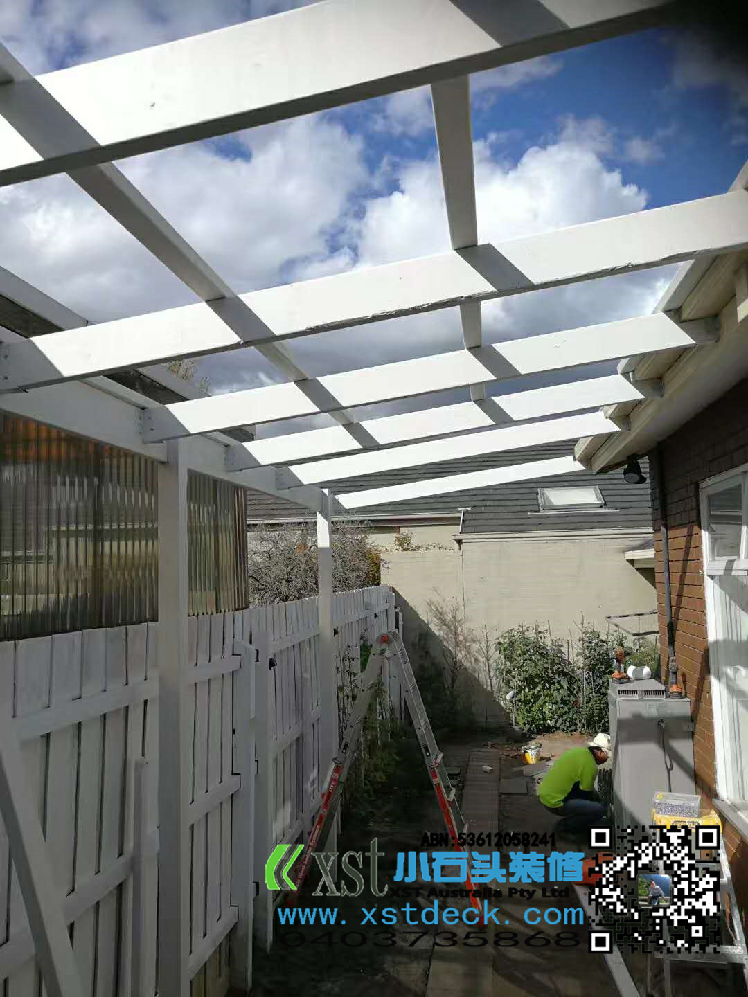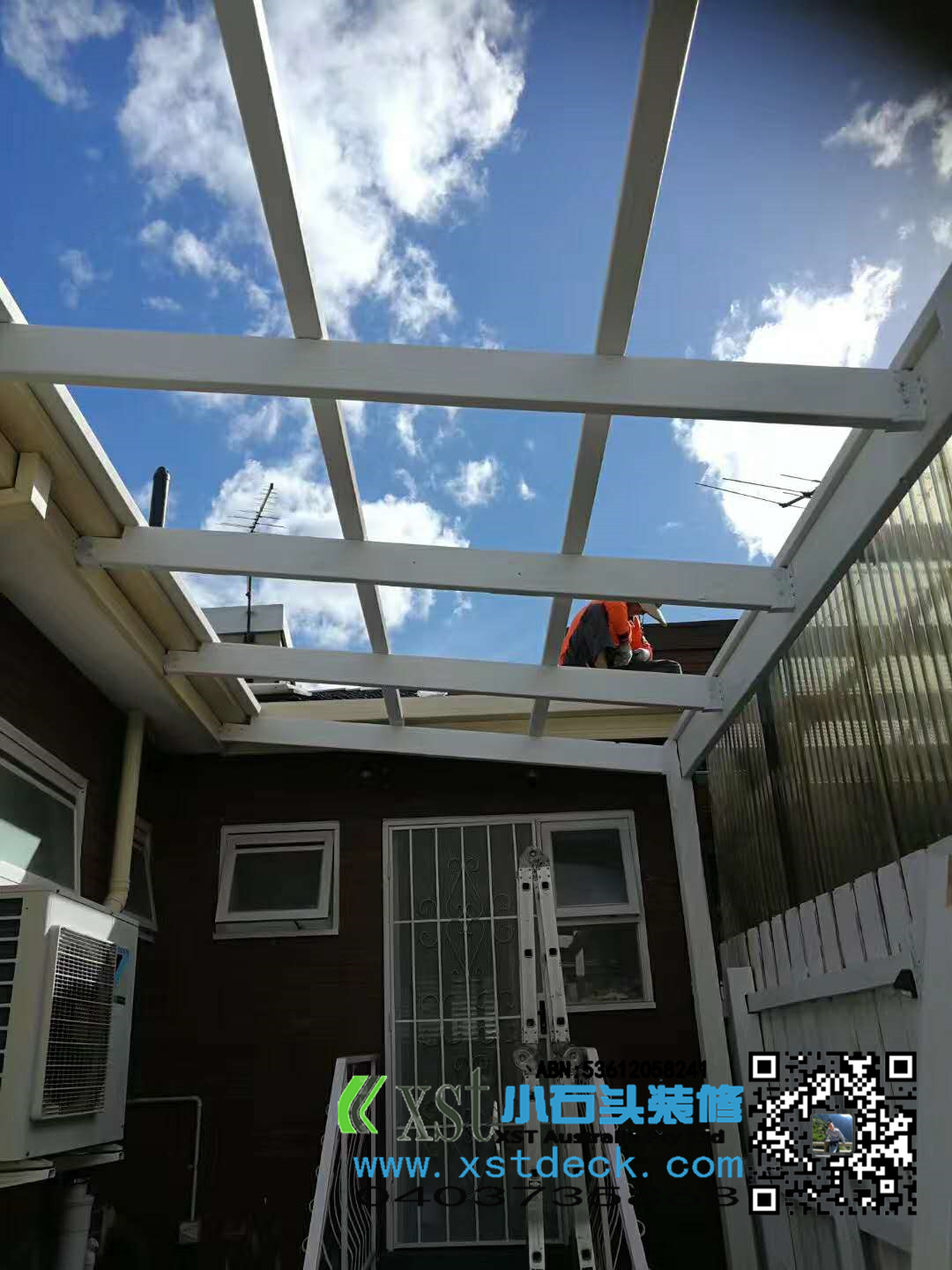 墨尔本专业户外凉棚雨棚pergola,3m*7.6m,白色油漆,三面铁皮包边,防漏雨处理