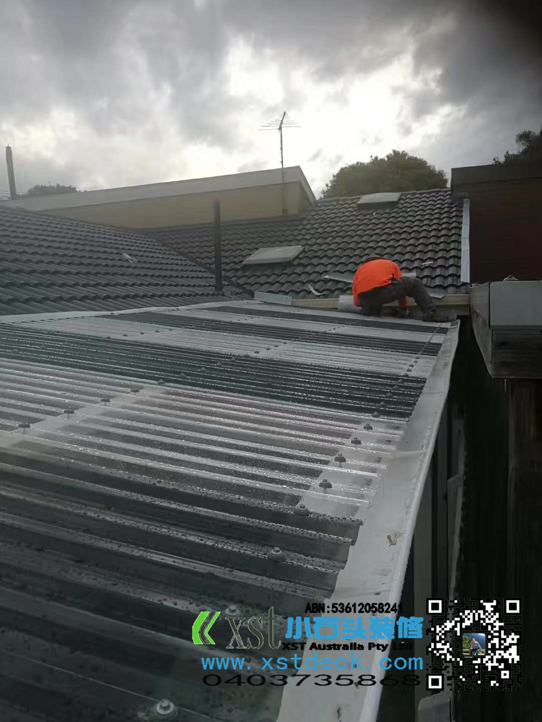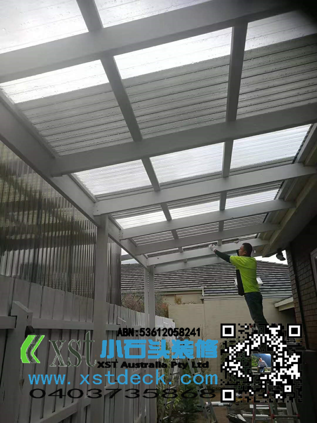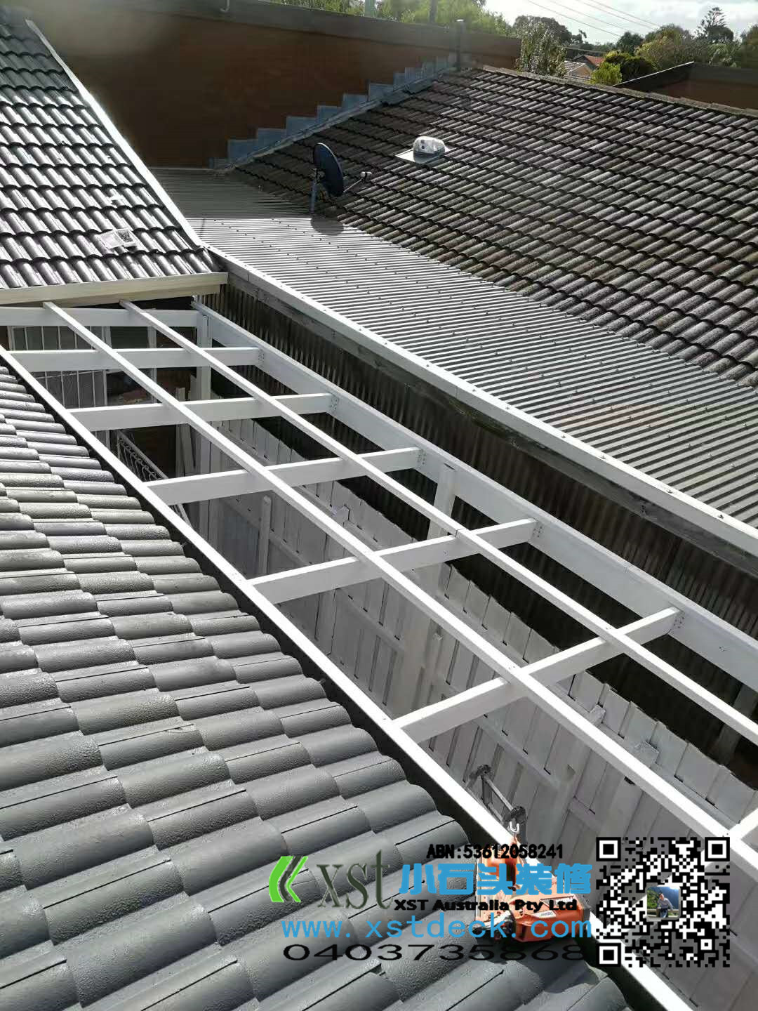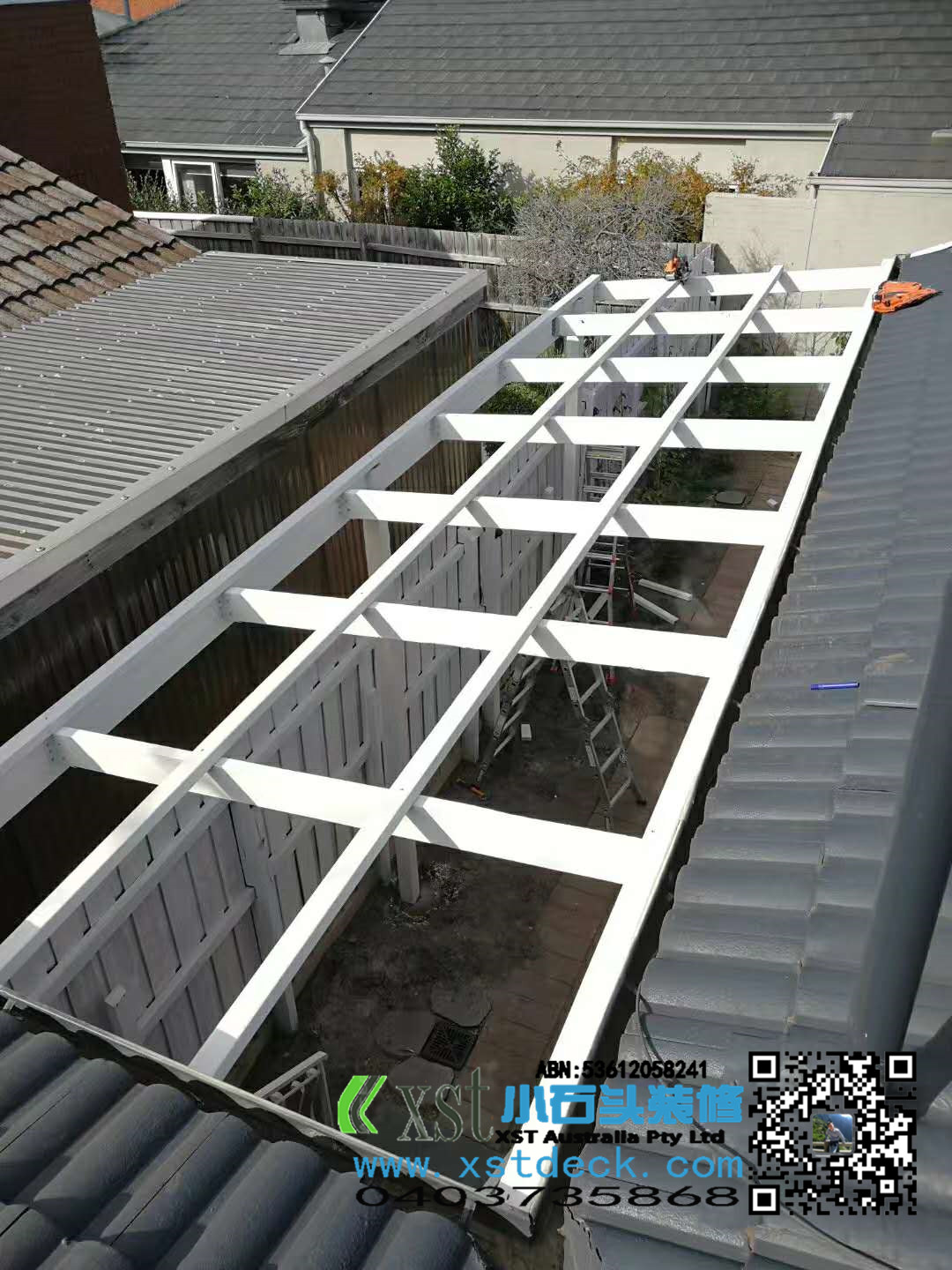 墨尔本专业户外凉棚雨棚pergola,3m*7.6m,白色油漆,三面铁皮包边,防漏雨处理