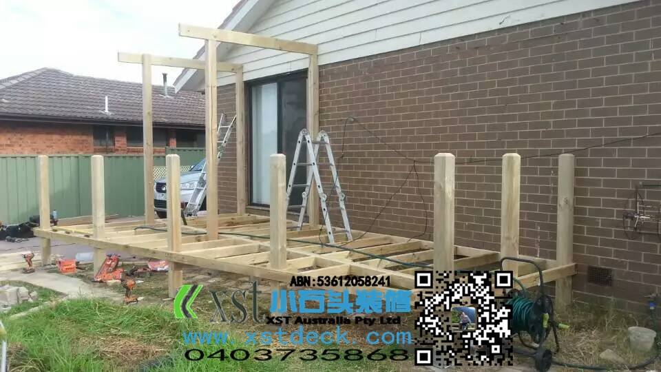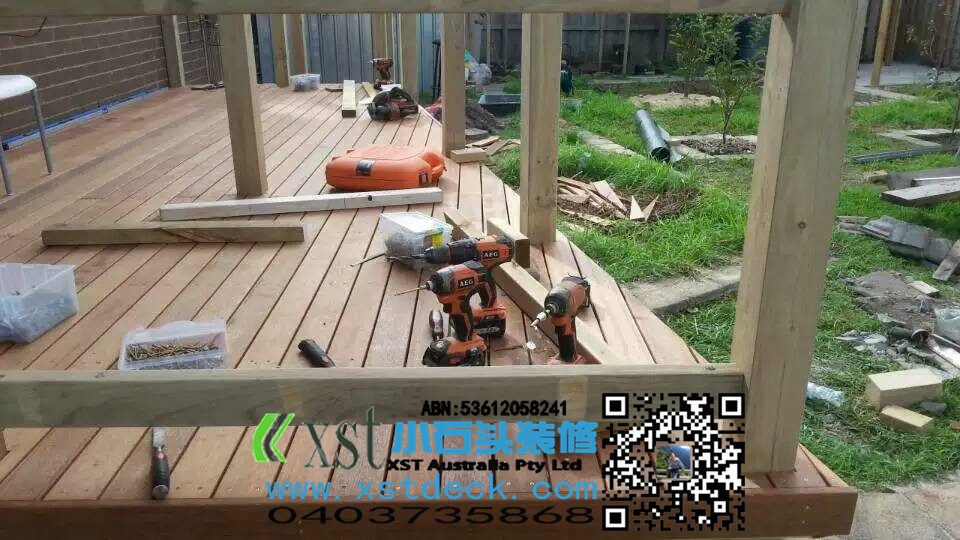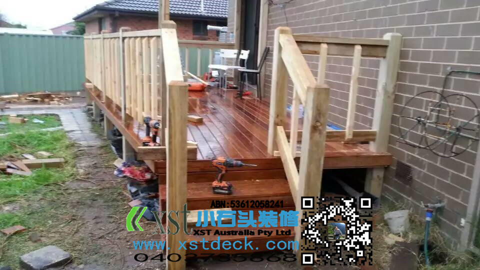 墨尔本东南区14平方梯形户外地板decking,2阶小楼梯