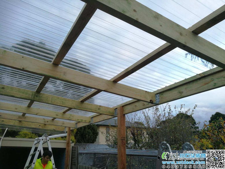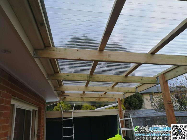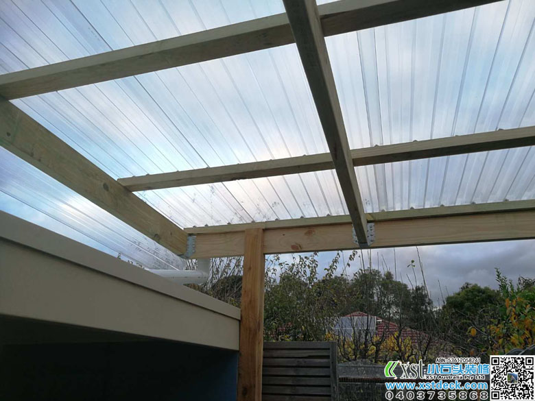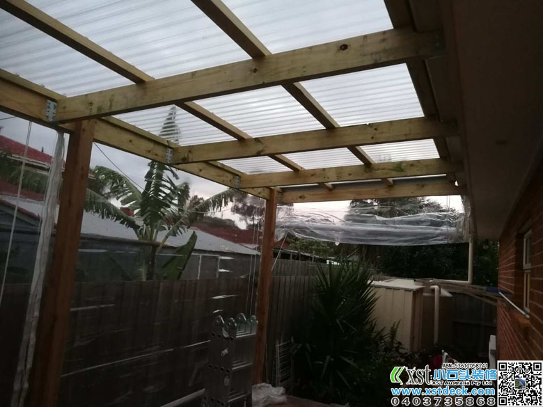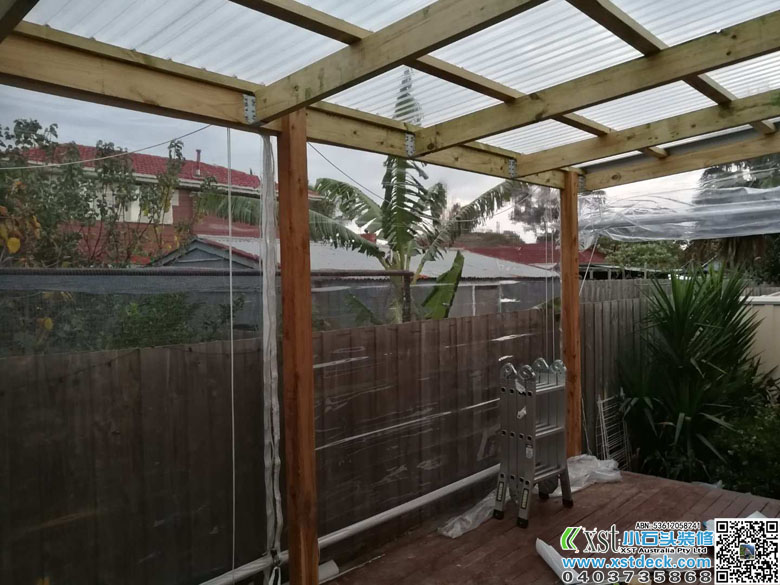 墨尔本 凉棚 雨棚 3m*6.5 m pergola 透明顶棚 防雨塑料帘