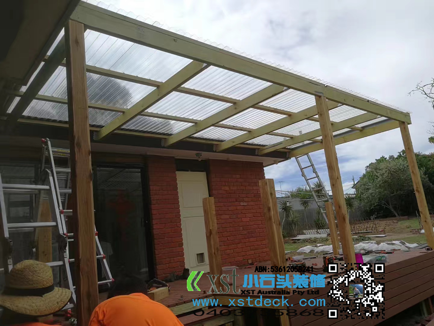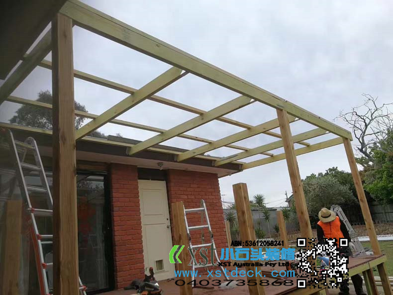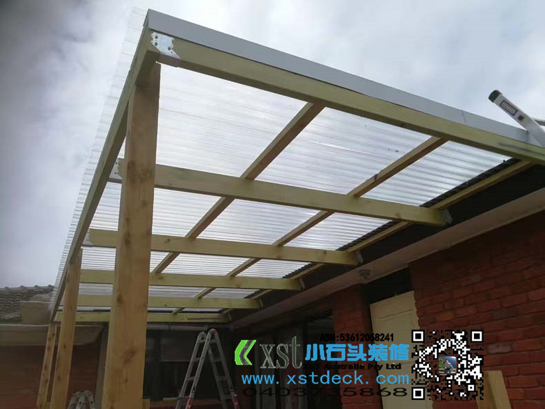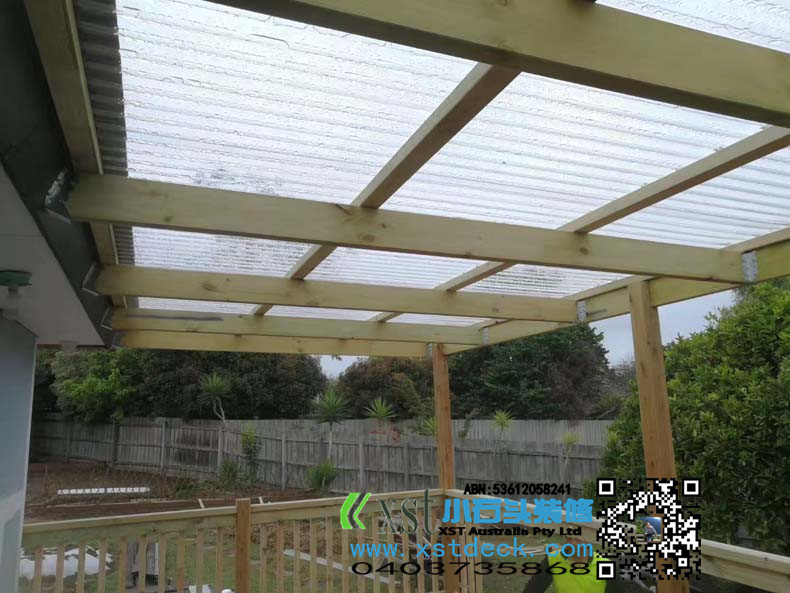 墨尔尔本 户外凉棚,雨棚 3.6*6 透明项 原木色框架