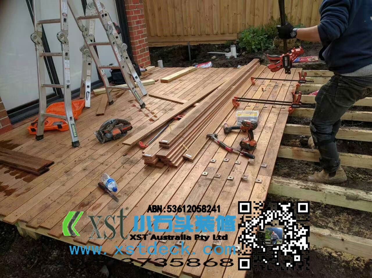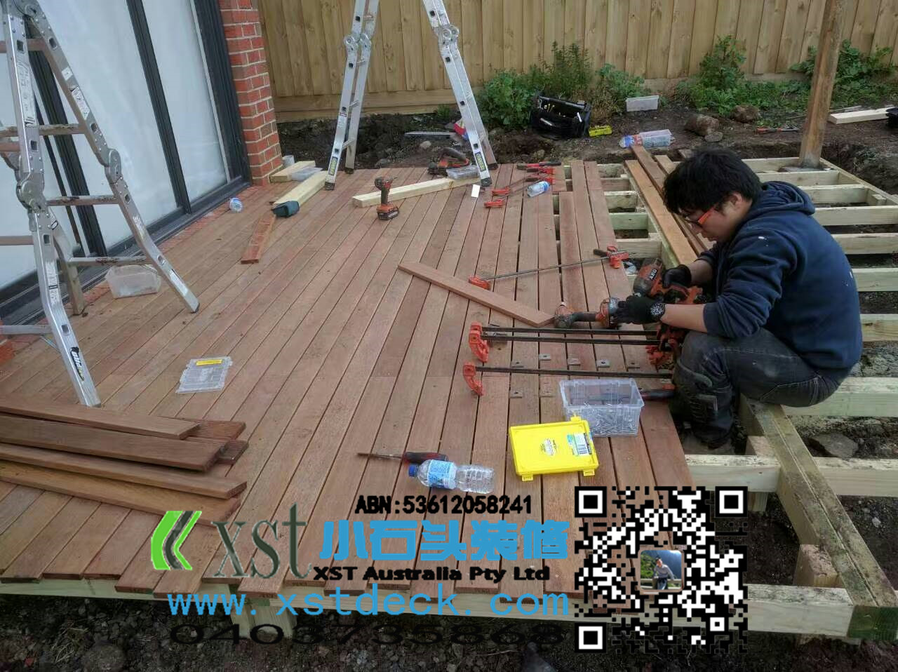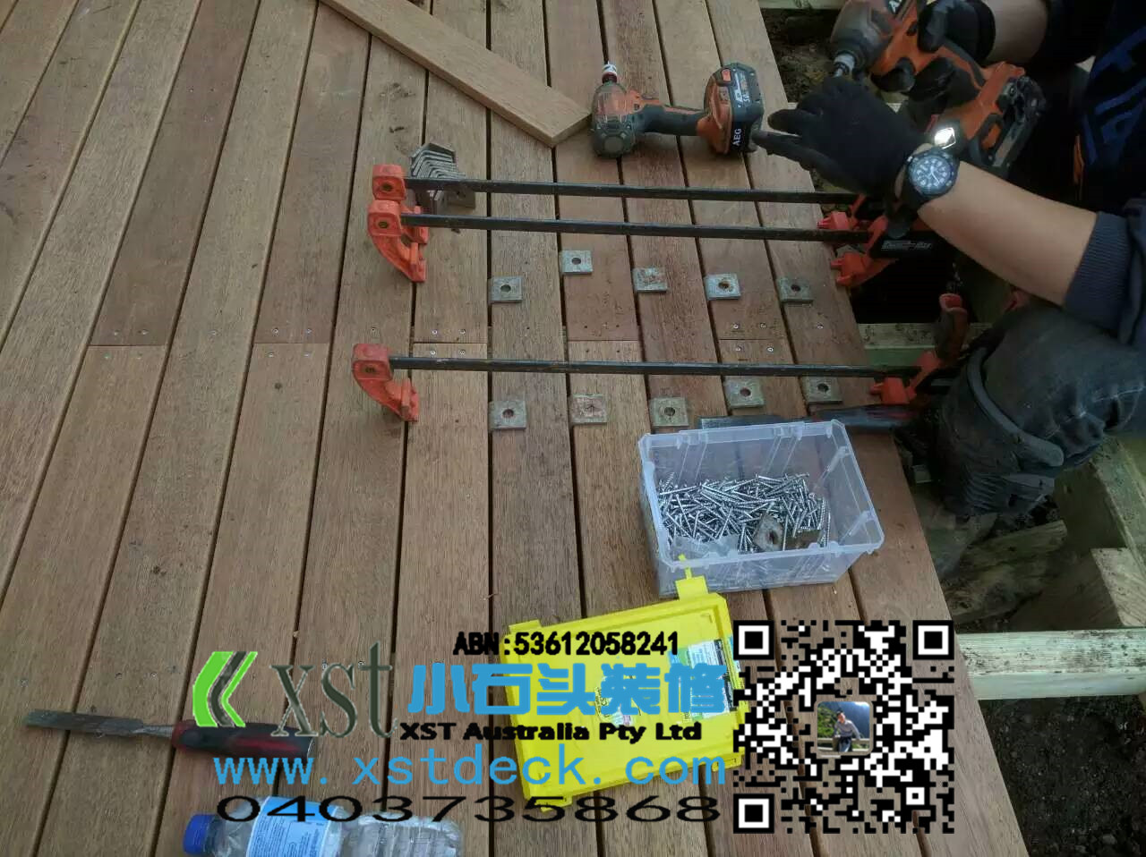 墨尔本decking17平米户外地板,不锈钢螺丝锁板,每一张decking板的缝隙,我们一如既往得保持五个毫米。。
