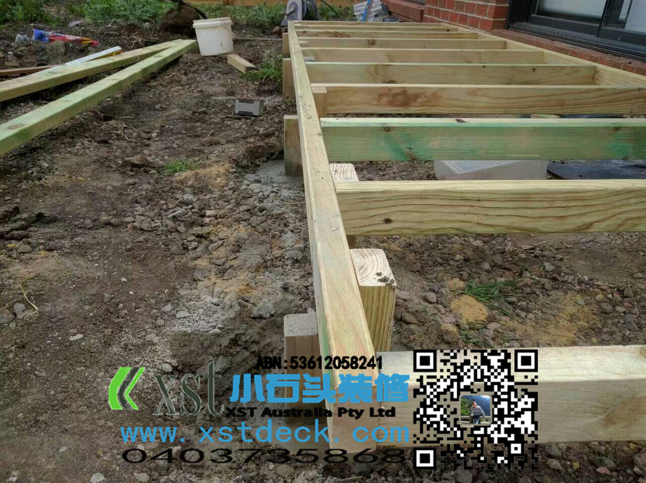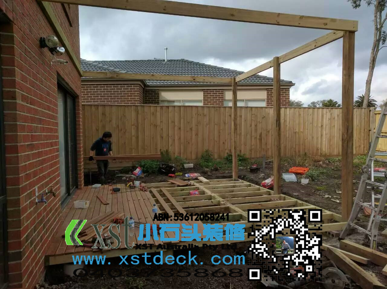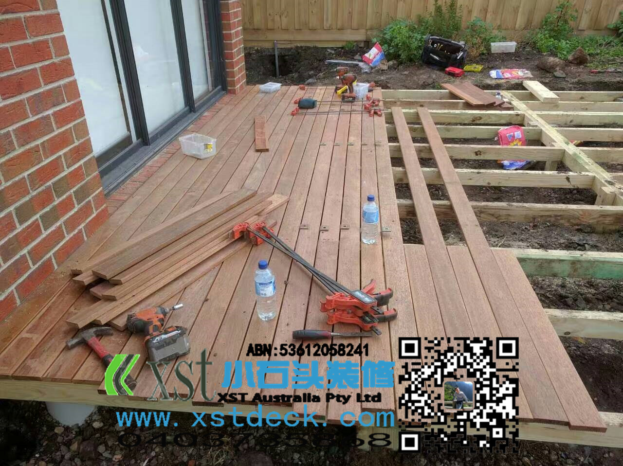 墨尔本decking17平米户外地板,不锈钢螺丝锁板,每一张decking板的缝隙,我们一如既往得保持五个毫米。。