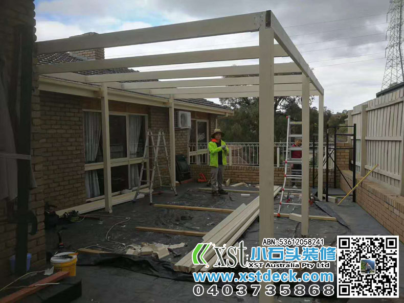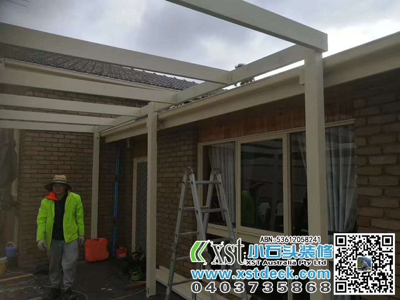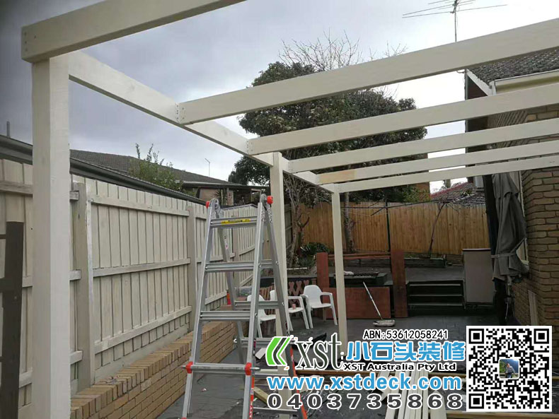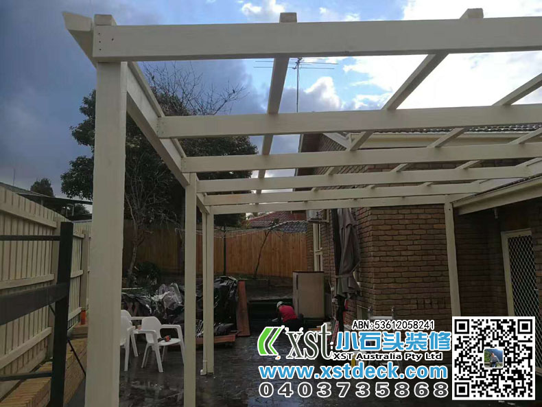 墨尔本 凉棚 雨棚 双排柱结构 白色油漆 pergola