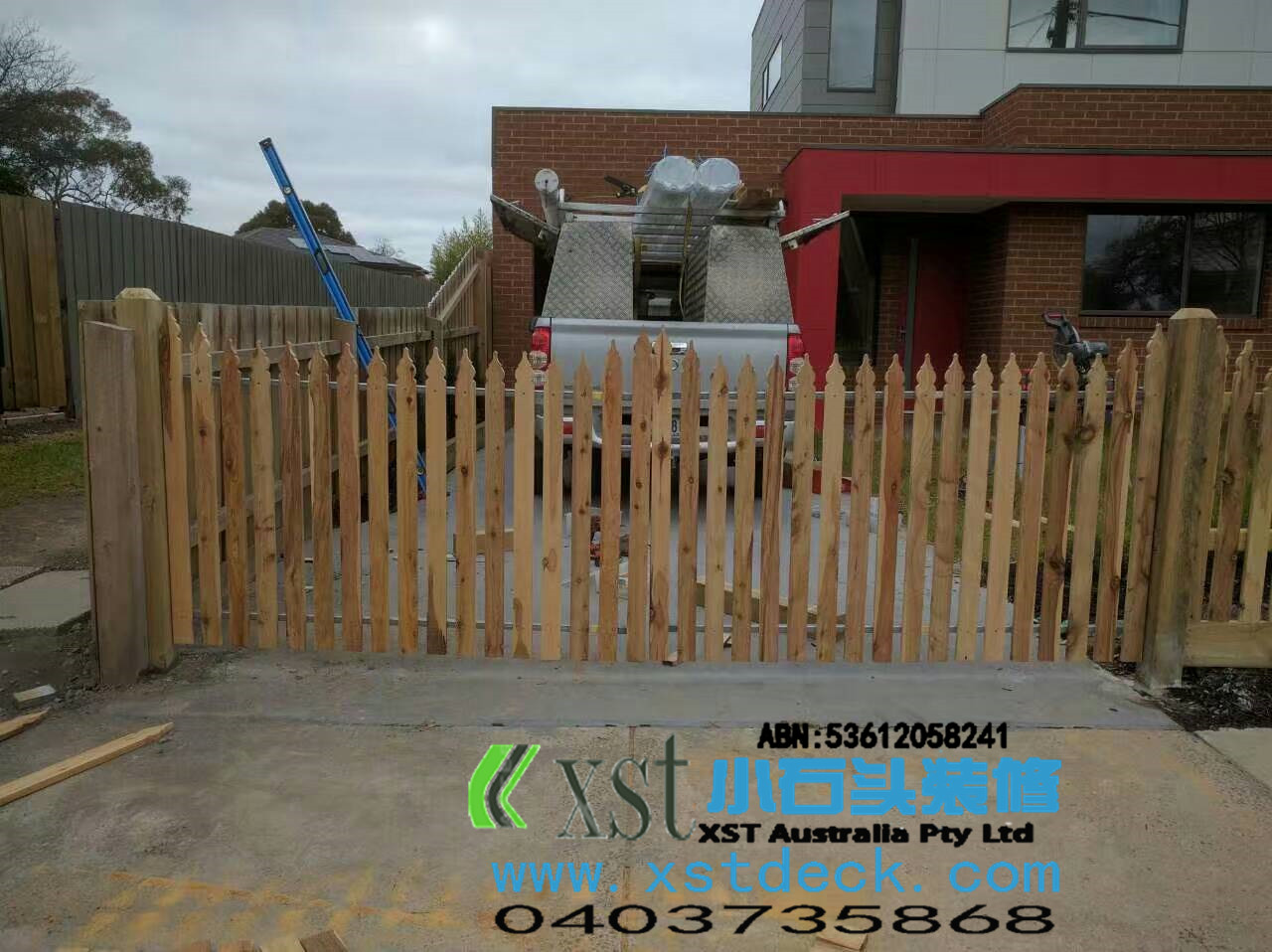墨尔本东南区前院15米1.05-1.2高围栏。picket,3.5M双开门铁框架。