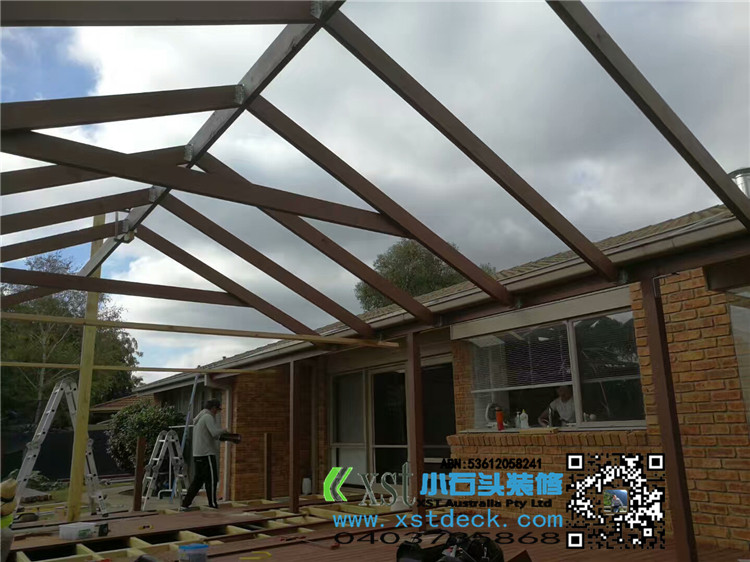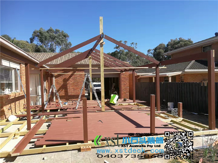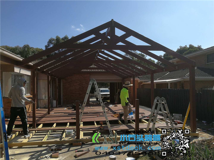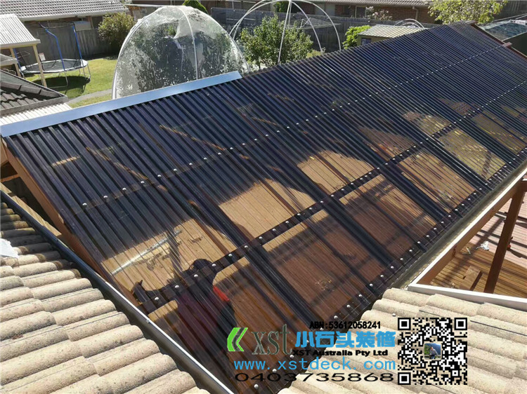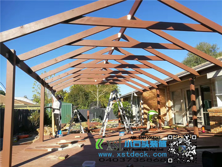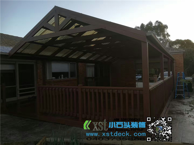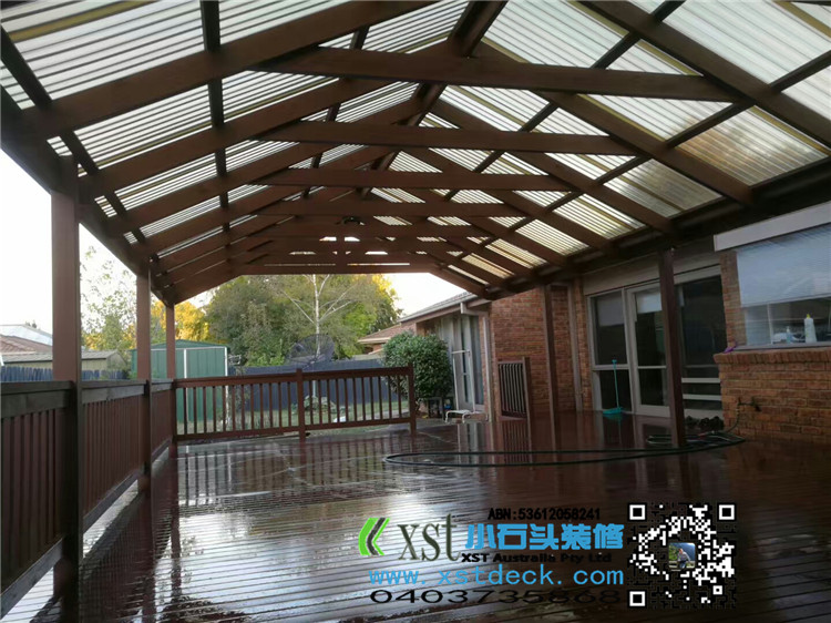 墨尔本 户外人字项凉棚 雨棚 5mX9m pergola 咖啡色顶 水巢下水
