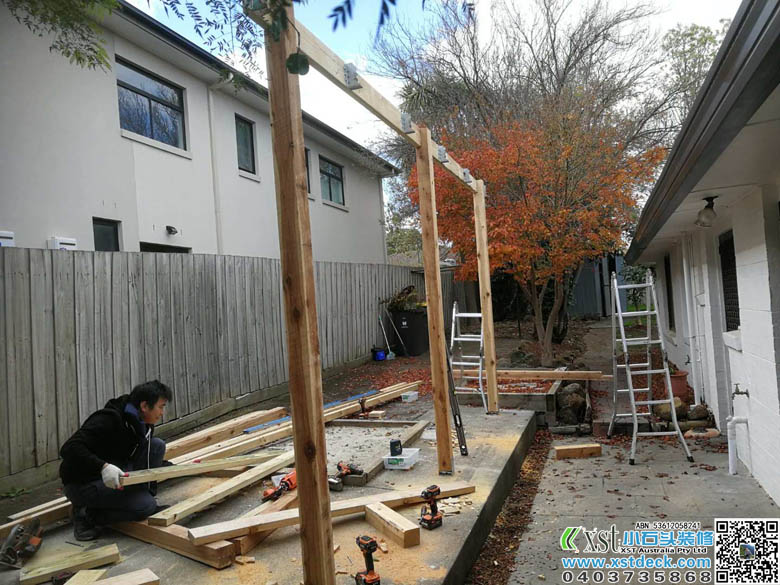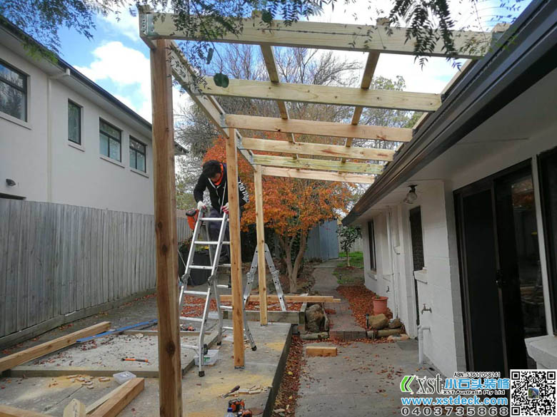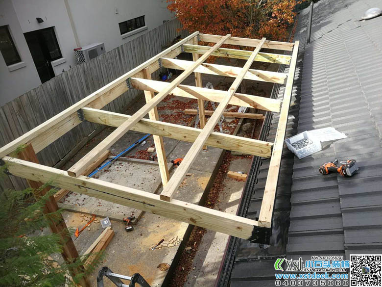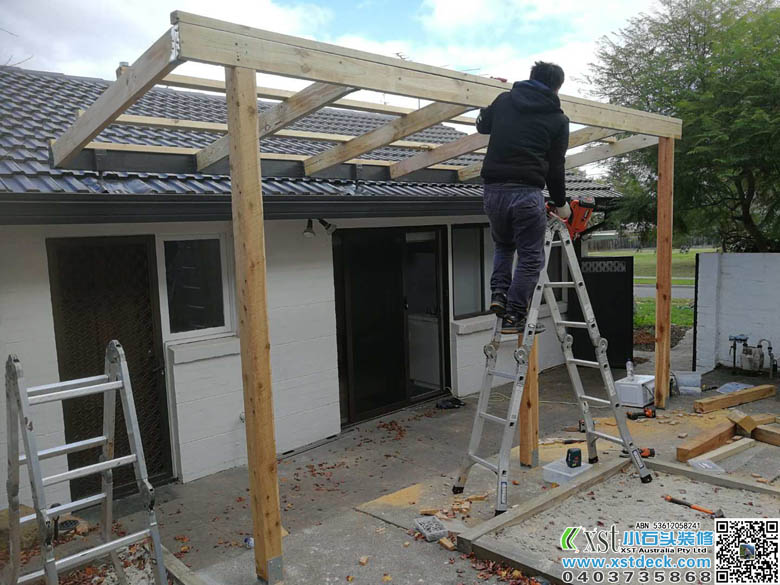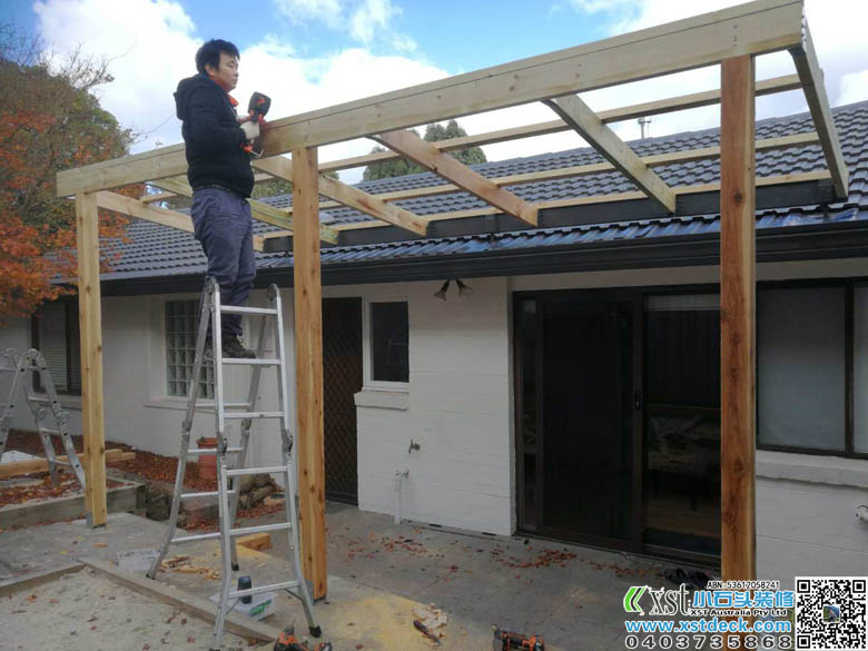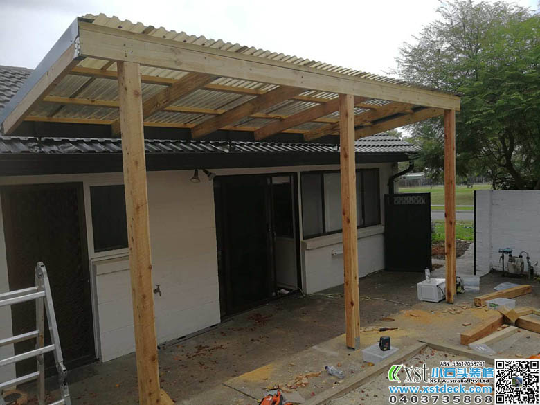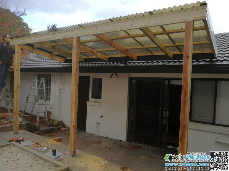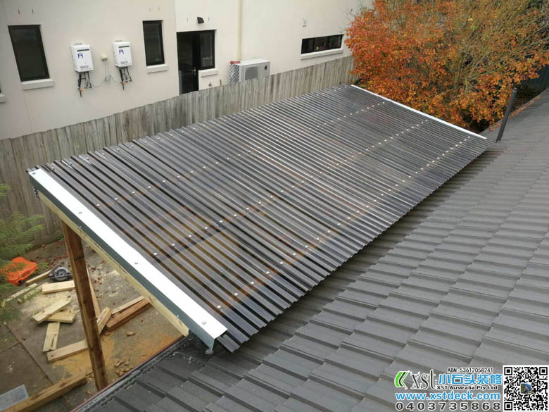 墨尔本 凉棚 雨棚 1.8m*5m内倾斜 架房了瓦顶结构 咖啡色顶棚
