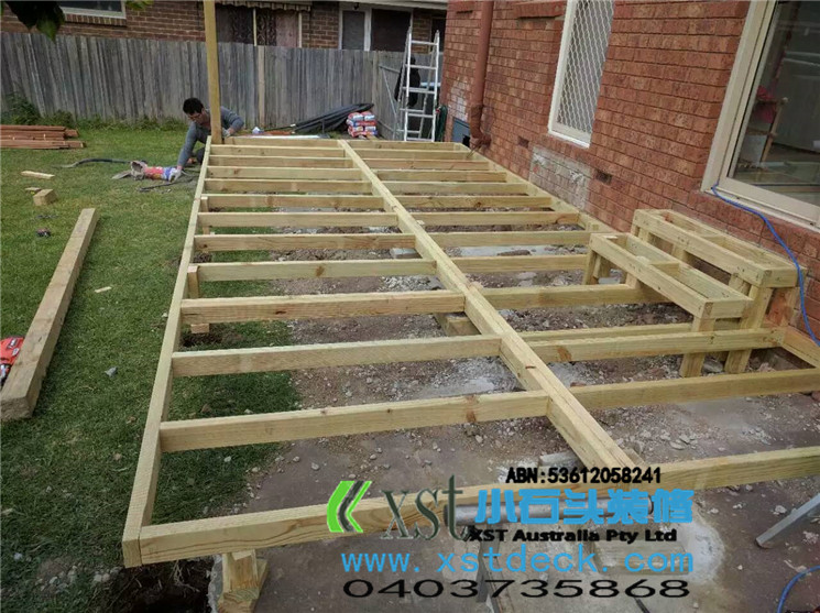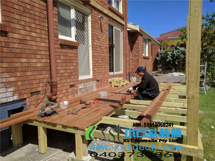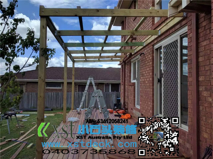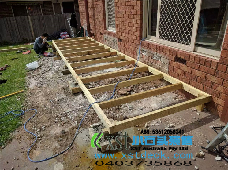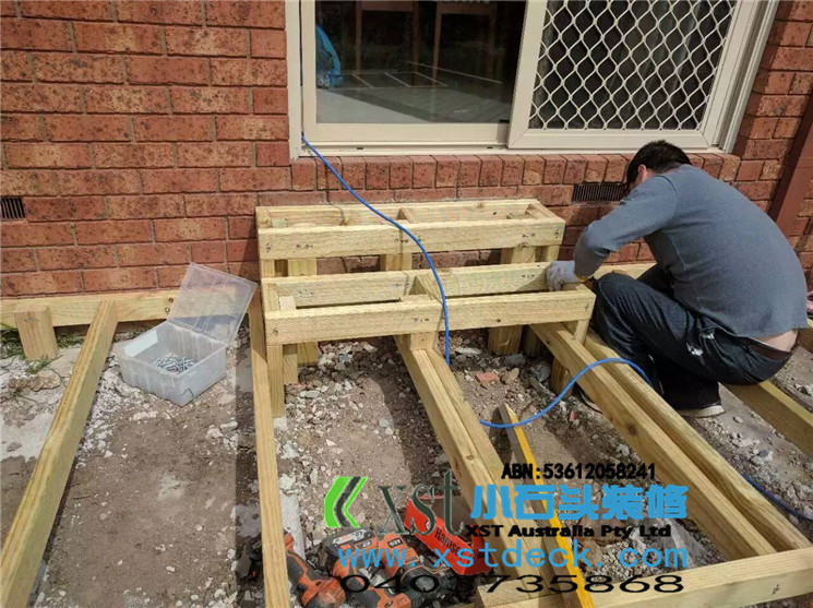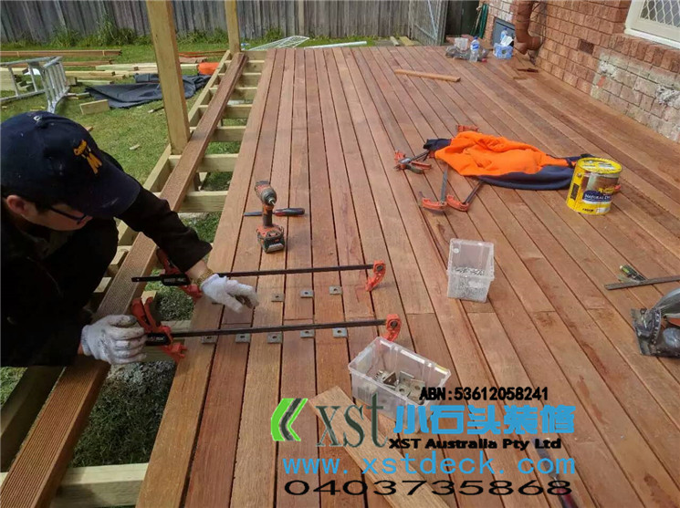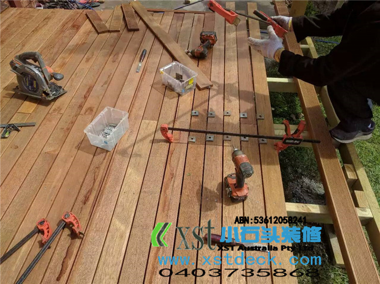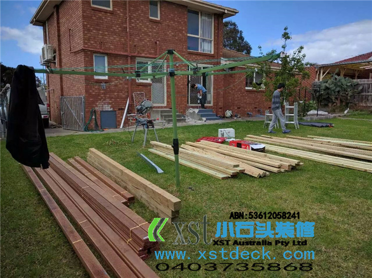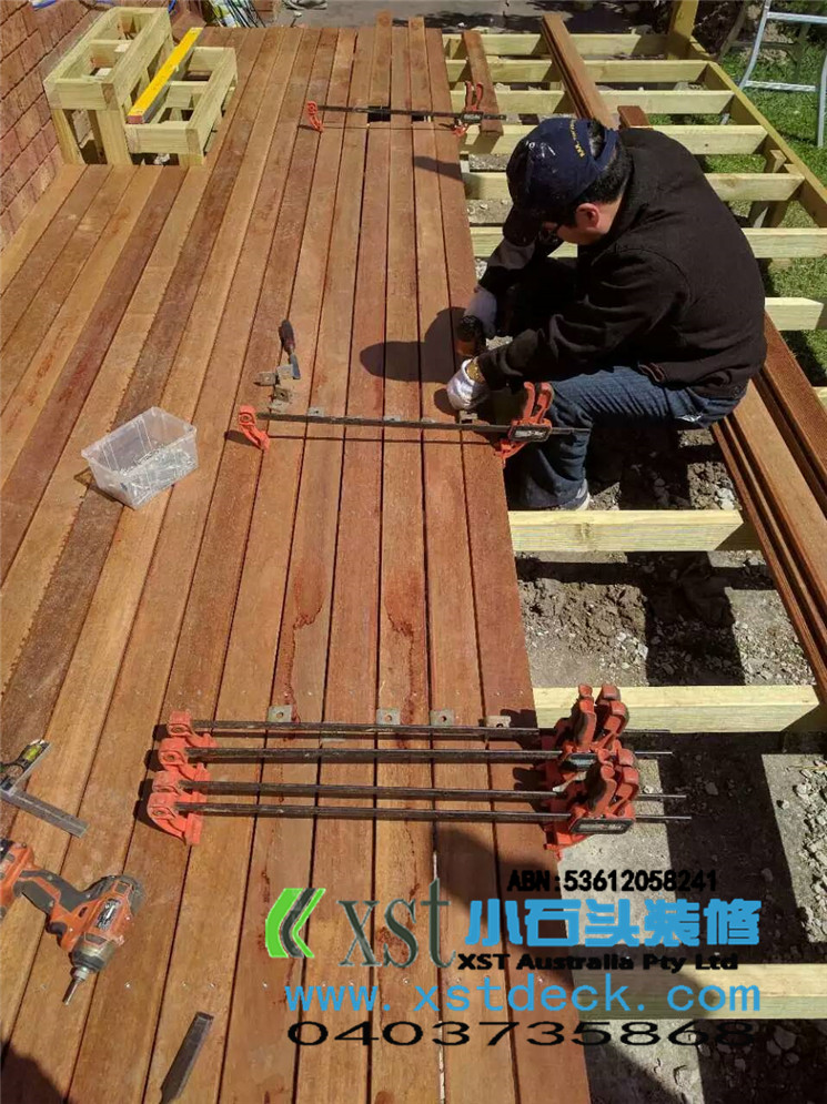 墨尔本 decking 17.5平方户外地板,2阶梯decking楼梯,我们每张decking板的缝隙,始终保持五个毫米。